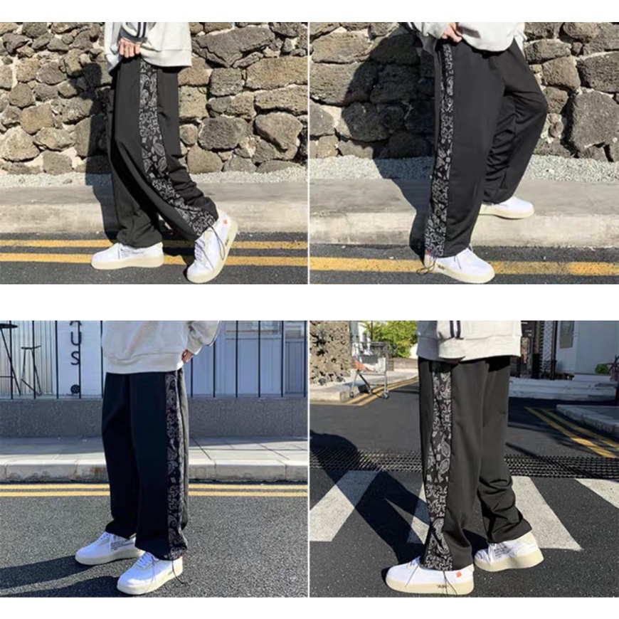 【K-2】變形蟲側邊條 腰果花 變形蟲長褲 單線褲 束口褲 寬褲 直筒褲 休閒長褲 情侶【BD818】