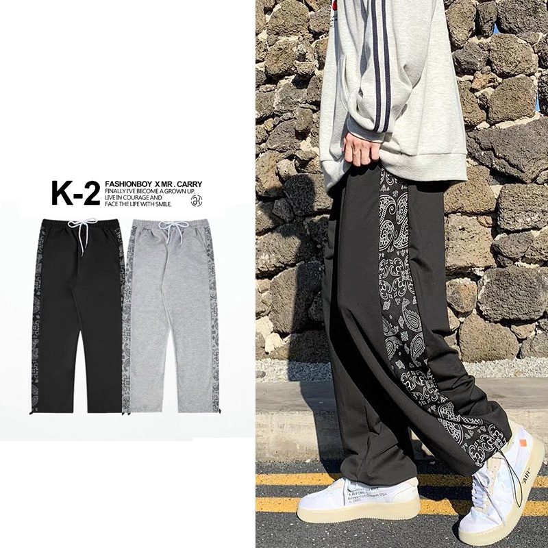 【K-2】變形蟲側邊條 腰果花 變形蟲長褲 單線褲 束口褲 寬褲 直筒褲 休閒長褲 情侶【BD818】灰色,XL|灰色,XXL|黑色,M|黑色,L|黑色,XL|黑色,XXL|灰色,M|灰色,LPantsK-2 Fashionboy