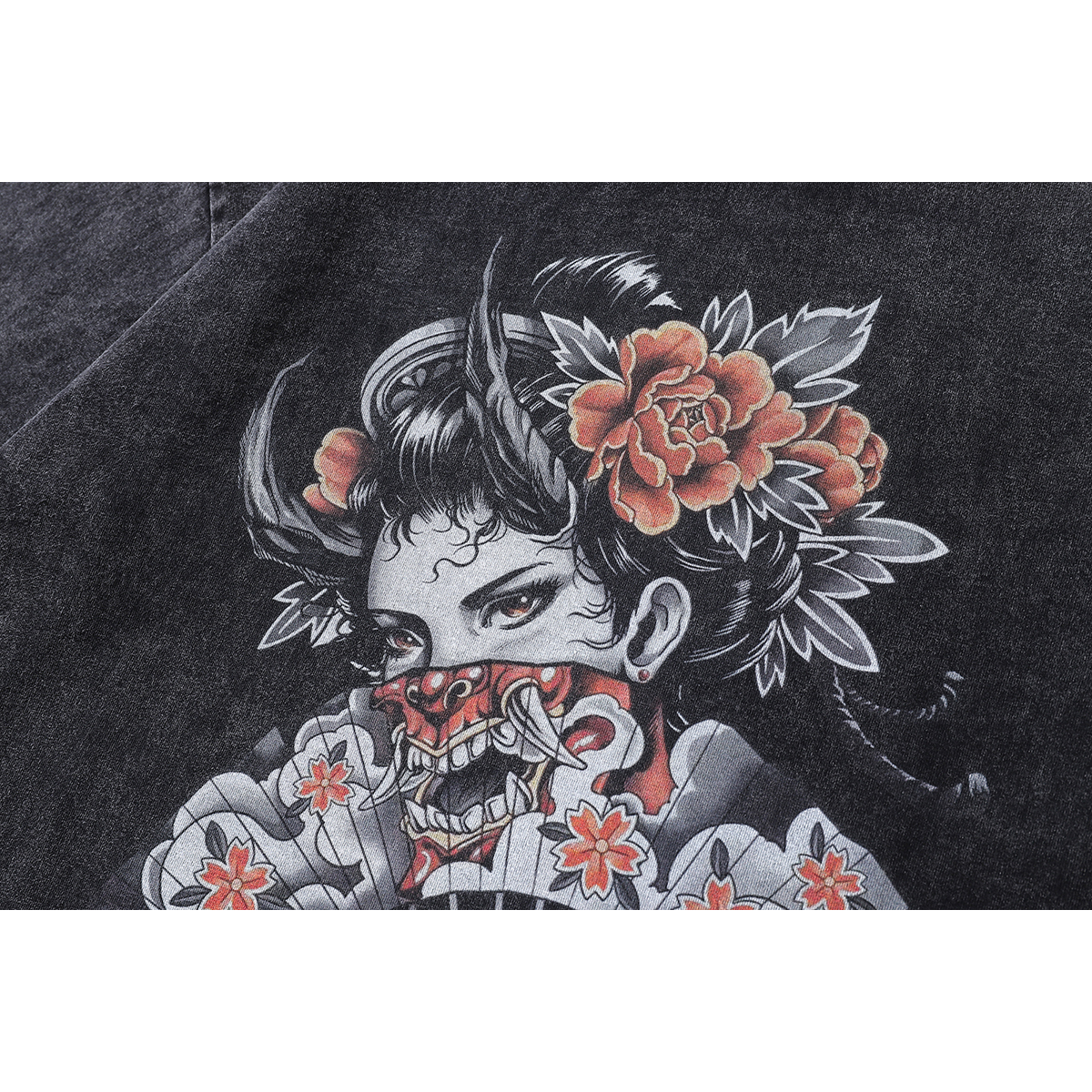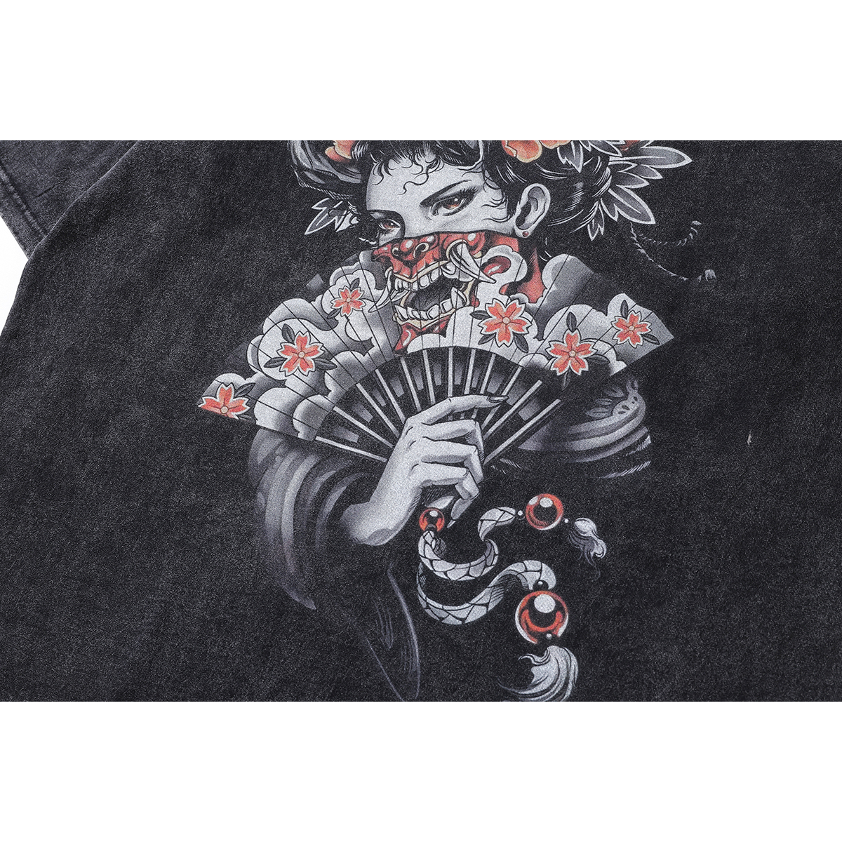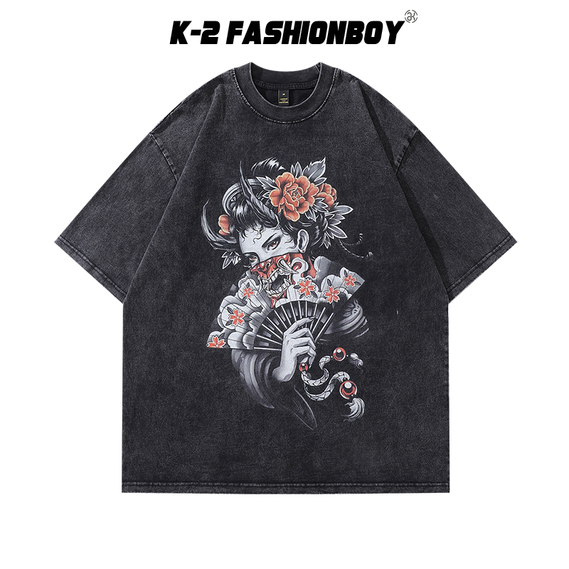 【K-2】日本藝妓 扇子 惡鬼 女人 日系 圖案T 水洗短T 短袖 穿搭 寬鬆落肩 個性 帥氣 89【AD89】M|L|XL|XXLT-ShirtsK-2 Fashionboy