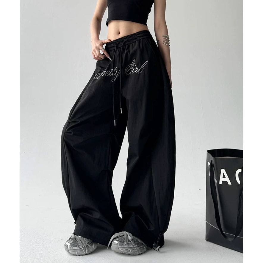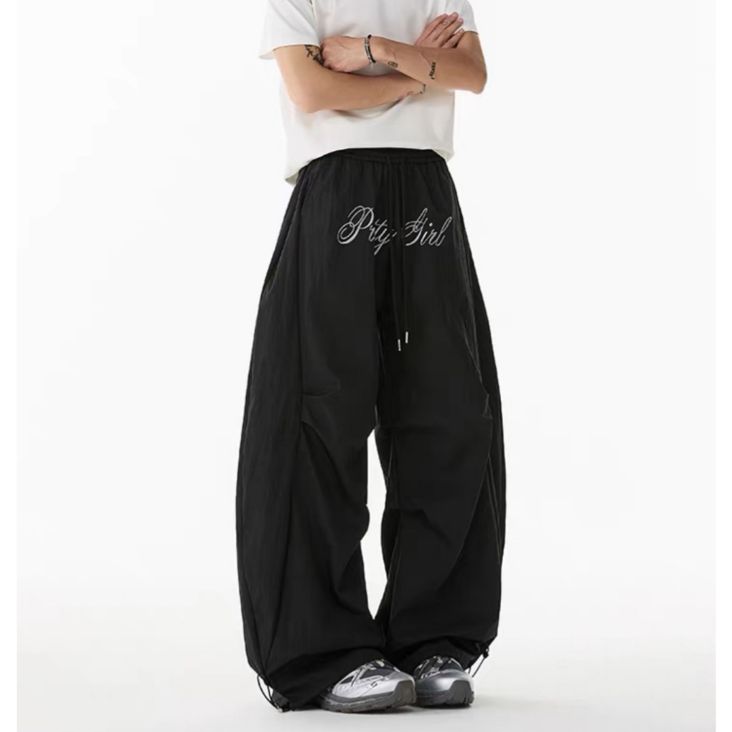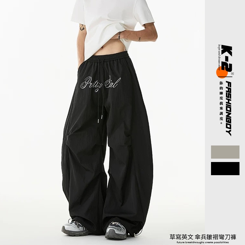 【K-2】美式休閒 草寫英文 傘兵皺褶 彎刀風褲 彎刀褲 闊腿褲 長褲 風褲 Y2K 休閒長褲 K2【JA8018】灰色,M|灰色,L|灰色,XL|灰色,XXL|黑色,M|黑色,L|黑色,XL|黑色,XXLPantsK-2 Fashionboy