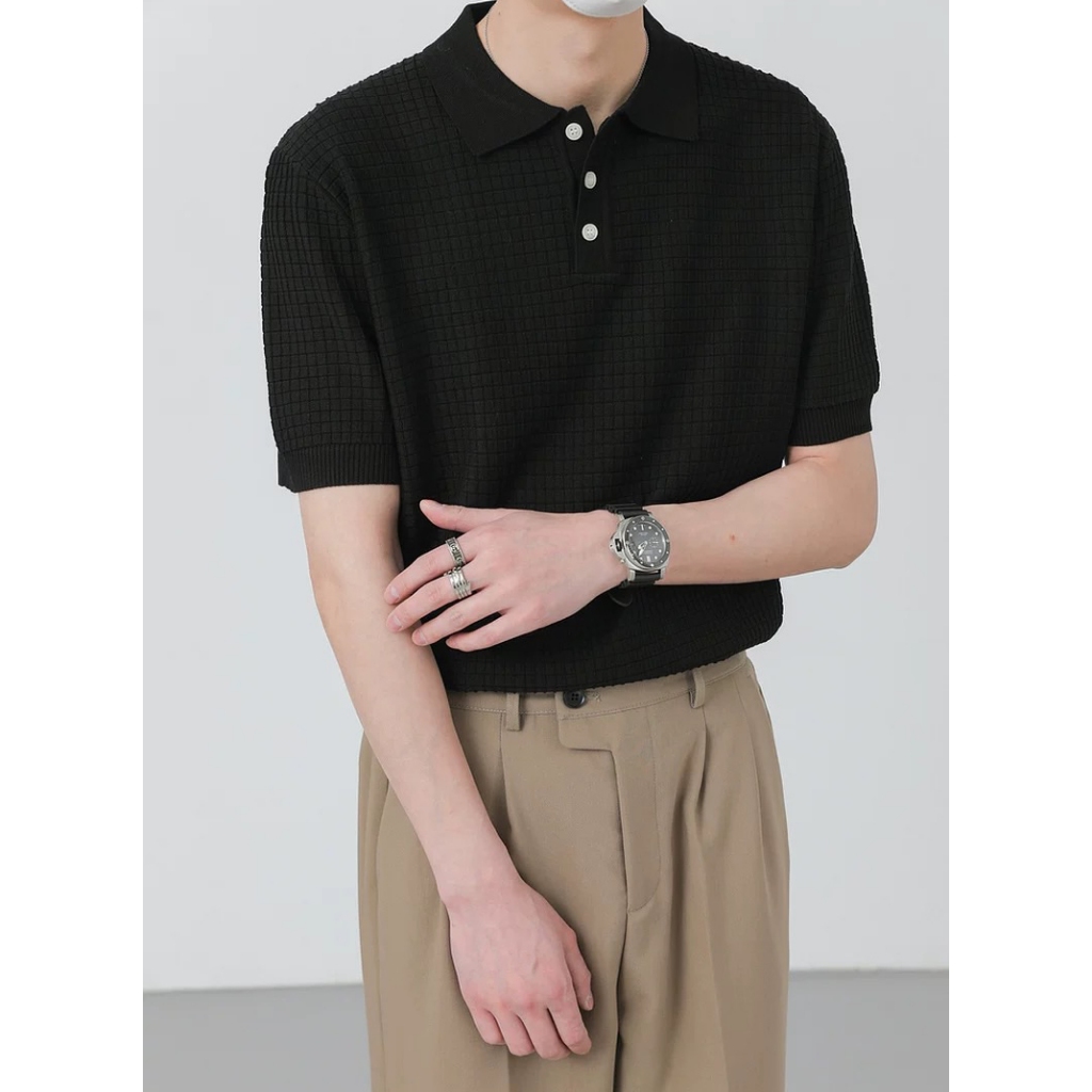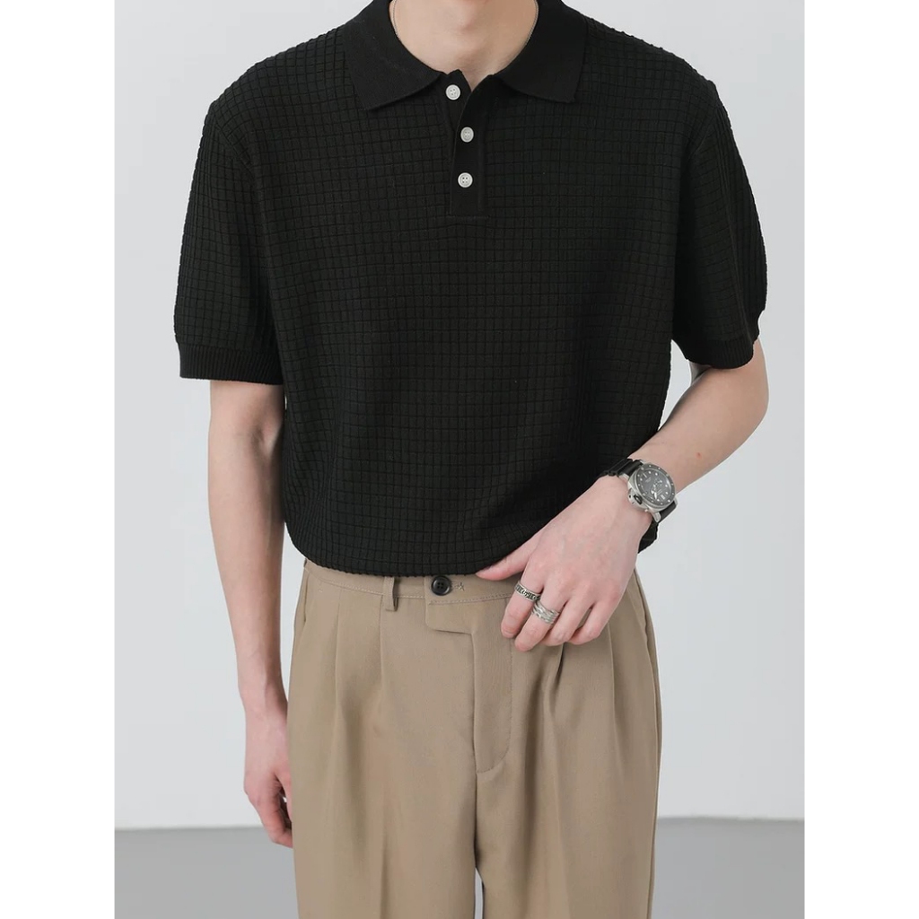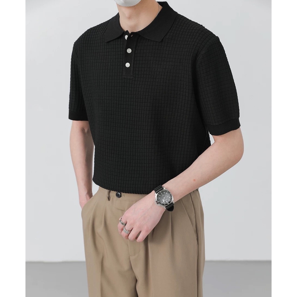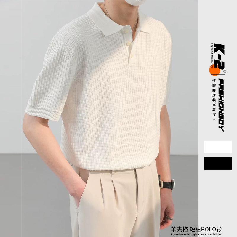 【K-2】BOXY 立體 鬆餅格 華夫格 短袖POLO衫 華夫格POLO衫 短版POLO 短袖 上衣 K2【J941】白色,M|白色,L|黑色,M|黑色,LPolo ShirtsK-2 Fashionboy