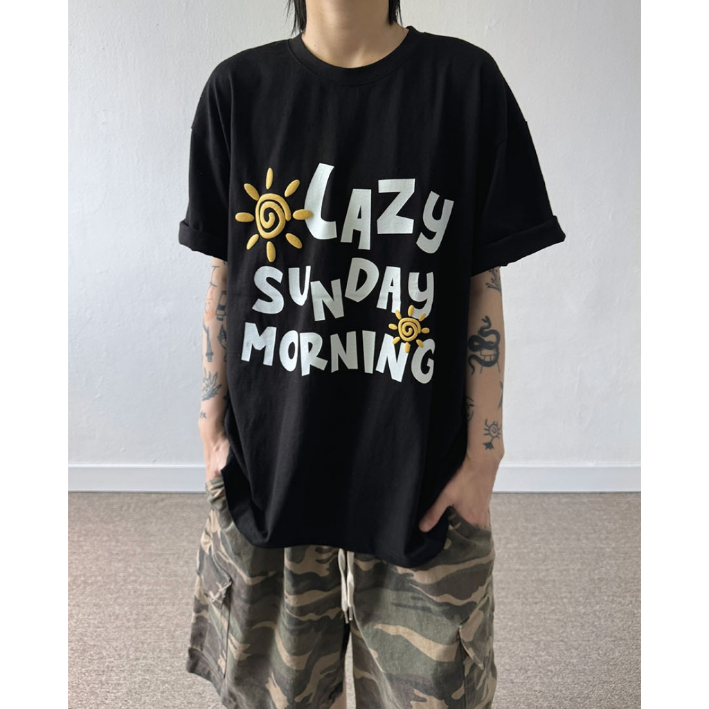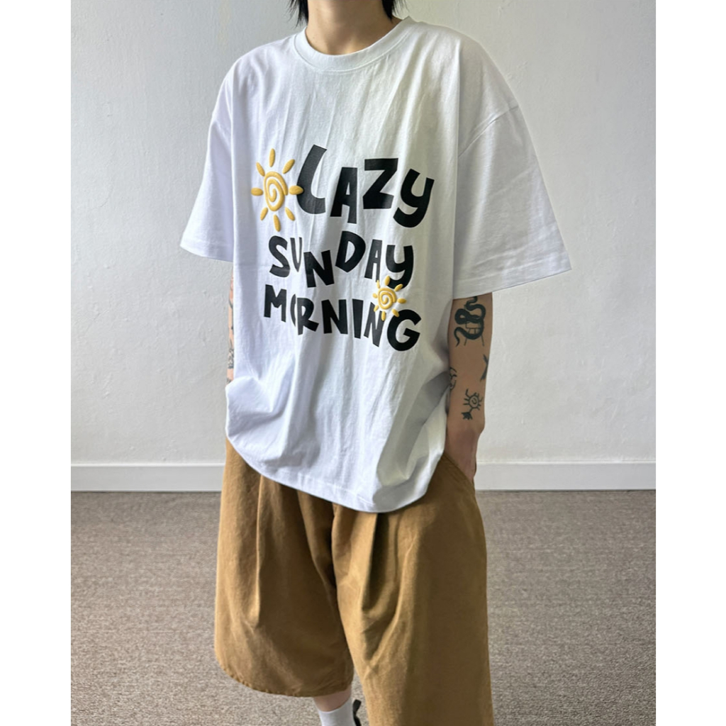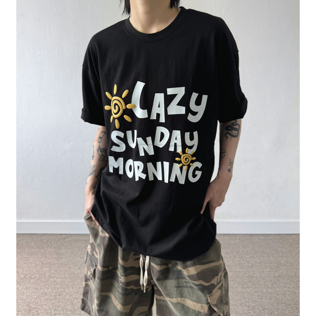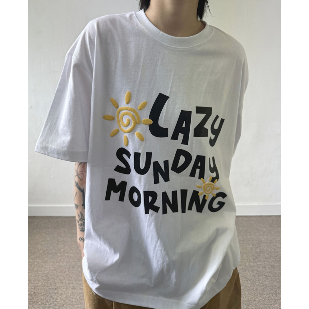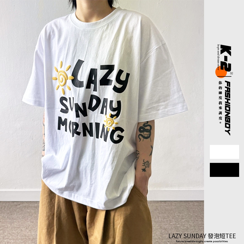 【K-2】LAZY SUNDAY MORNING 立體 發泡 陽光 太陽 落肩 寬鬆 短T 短袖 上衣【K2699】白色|黑色T-ShirtsK-2 Fashionboy