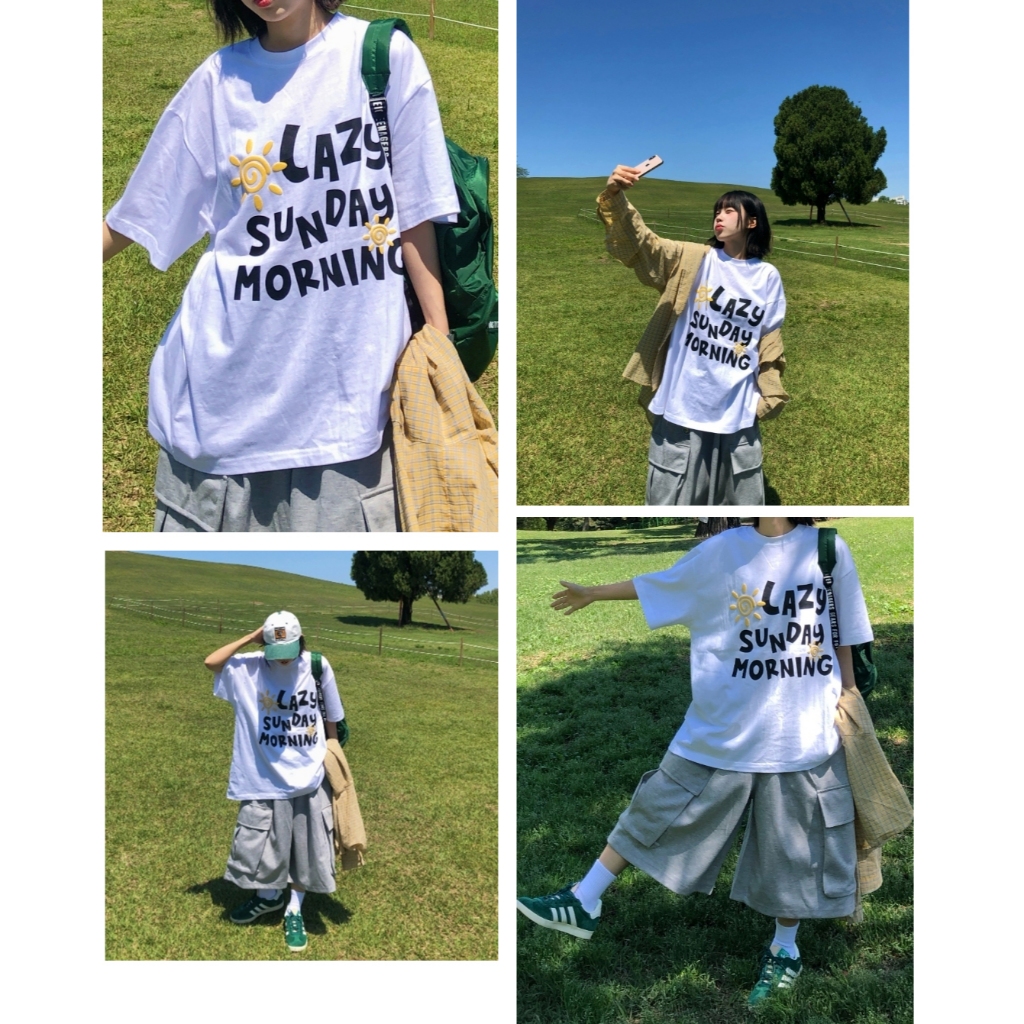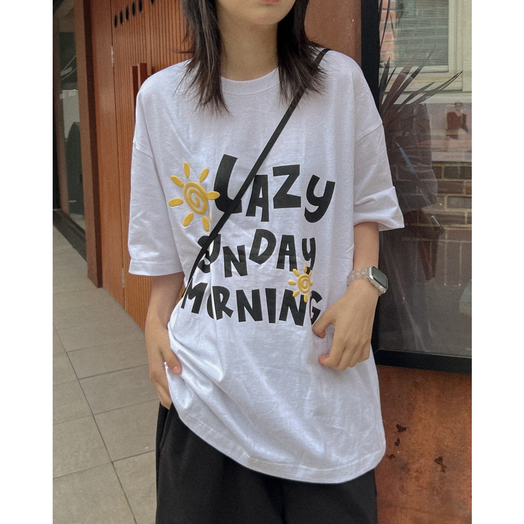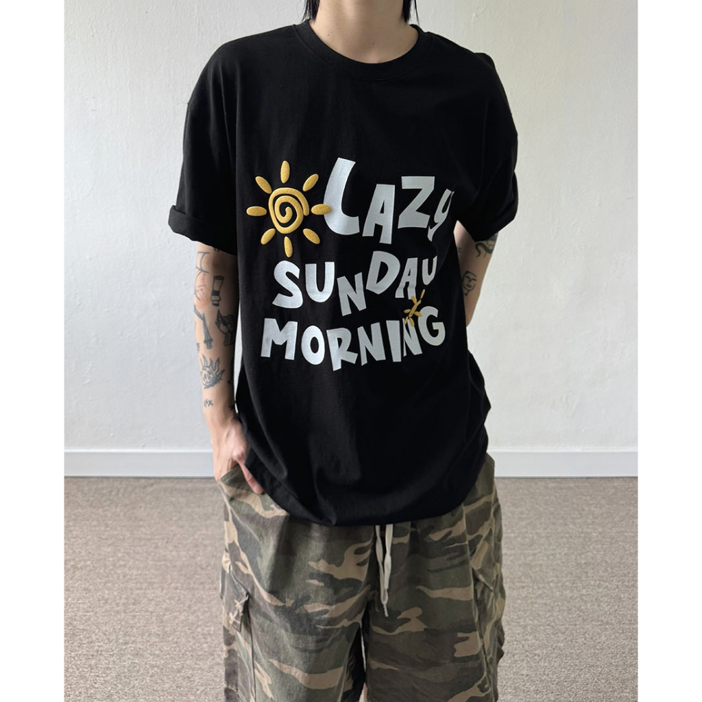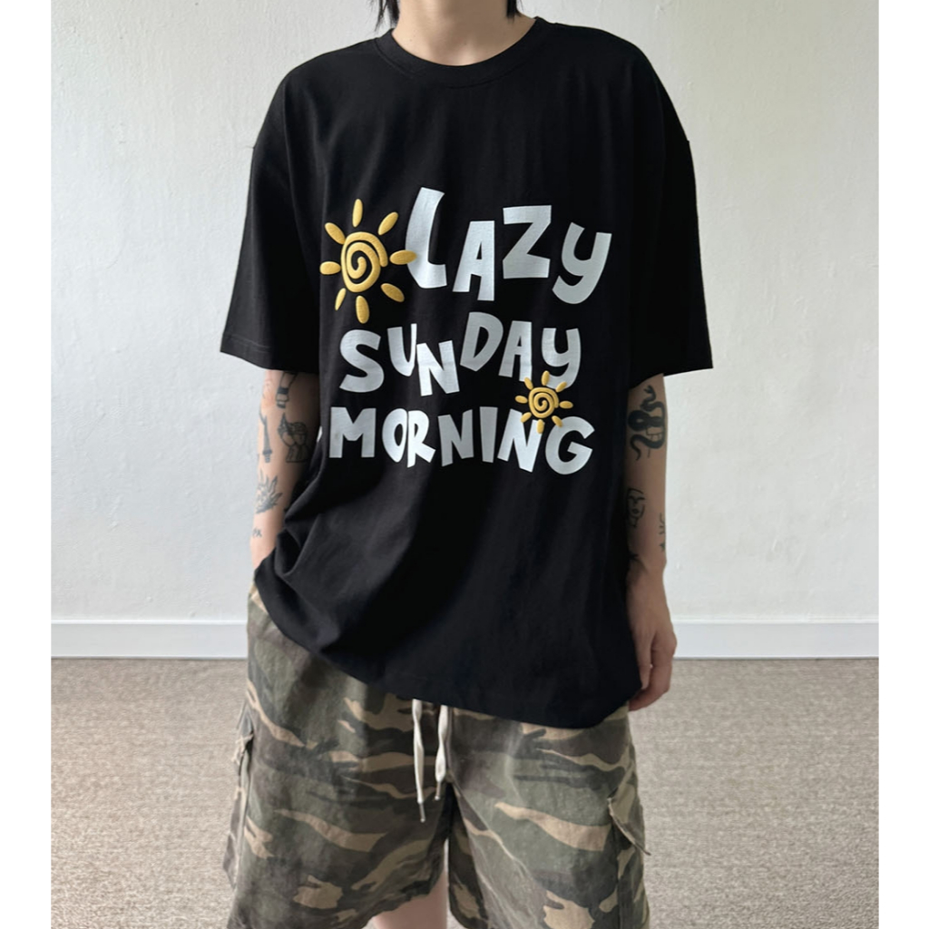 【K-2】LAZY SUNDAY MORNING 立體 發泡 陽光 太陽 落肩 寬鬆 短T 短袖 上衣【K2699】白色|黑色T-ShirtsK-2 Fashionboy
