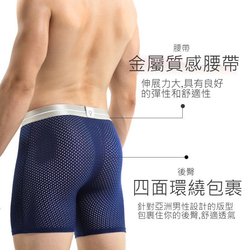 • HENIS運動機能長版四角褲透氣內褲男生運動內褲男涼感內褲防燒檔路跑馬拉松大尺碼內褲網眼內褲