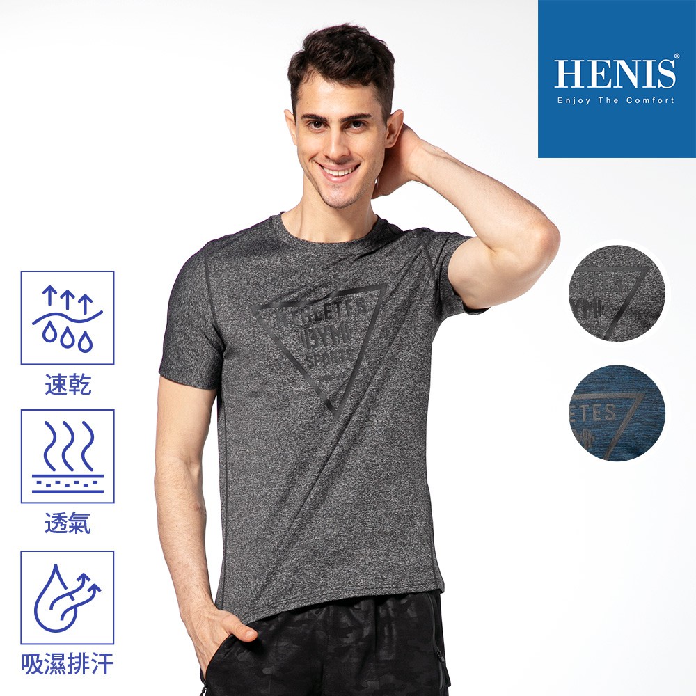 【現貨】HENIS陽離子圖騰機能 短袖t恤 (2色可選)(男 運動短袖 吸濕排汗 透氣 舒適 陽離子 機能 涼感衣)深灰,M|深灰,L|深灰,XL|深灰,2XL|深藍,M|深藍,L|深藍,XL|深藍,2XLT-ShirtsHenis恆適 男女內著 槍彈分離 防燒襠內褲 涼感衣 機能服飾 外套 發熱衣