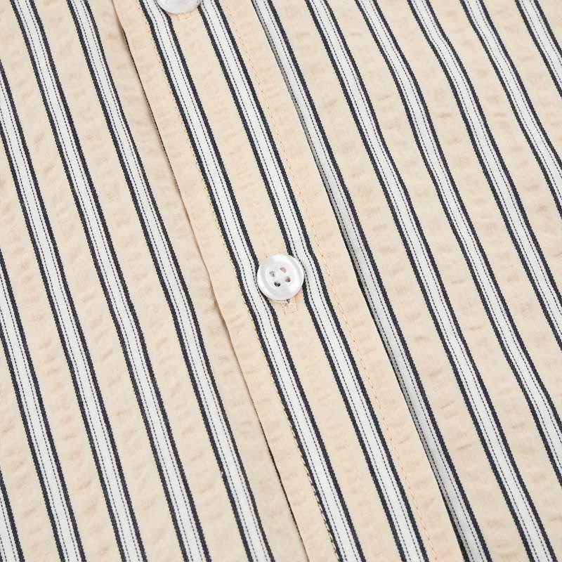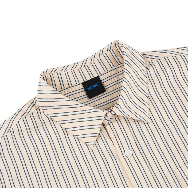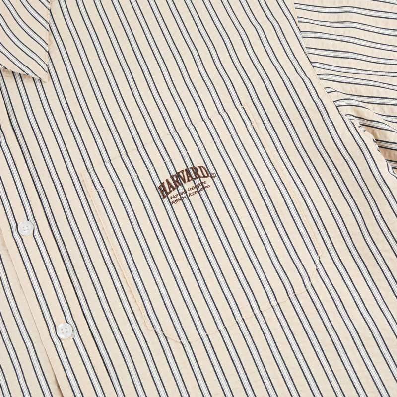 NCAA HARVARD 短袖襯衫 落肩條紋上衣 淺卡其 74251472 31 noF67