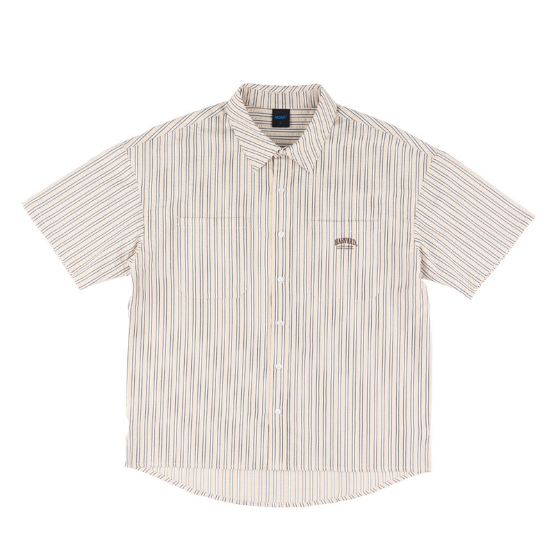 NCAA HARVARD 短袖襯衫 落肩條紋上衣 淺卡其 74251472 31 noF67S|M|L|XL|XXLShirtsHUMANPEACE
