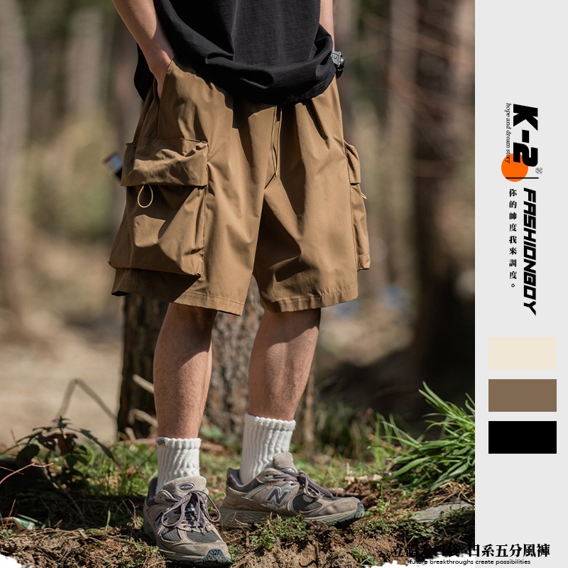 【K-2】Gorpcore 立體大口袋 寬鬆工裝短褲 山系 衝鋒褲 短褲 休閒 鬆緊褲頭 運動 機能 日系 風褲咖色,M|咖色,L|咖色,XL|淺卡其色,M|淺卡其色,L|淺卡其色,XL|黑色,M|黑色,L|黑色,XLK-2 Fashionboy