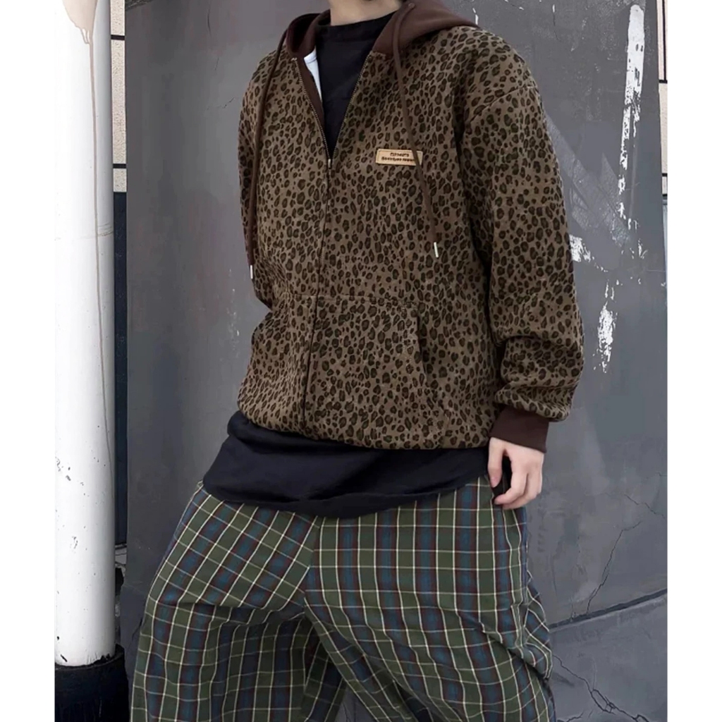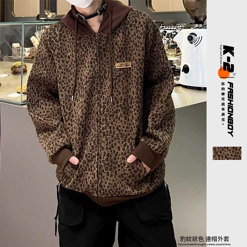 【K-2】美式休閒 豹紋外套 撞色 小標 復古外套 連帽外套 豹紋 cleanfit Y2k外套 K2 外套【J203】M|LJacketsK-2 Fashionboy