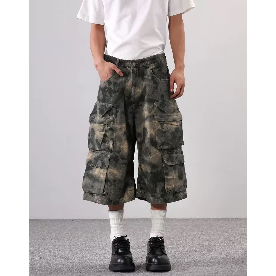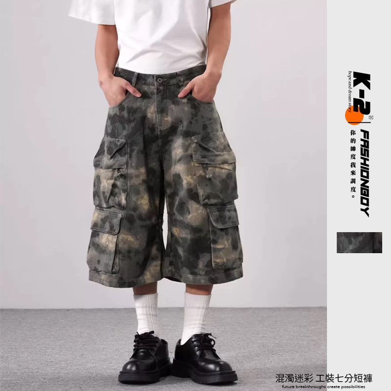 【K-2】美式復古 混濁迷彩 七分短褲 工裝短褲 七分褲 工裝七分褲 渾沌 泥潭 迷彩褲 工作褲 短褲【JH238】M|L|XL|XXLK-2 Fashionboy