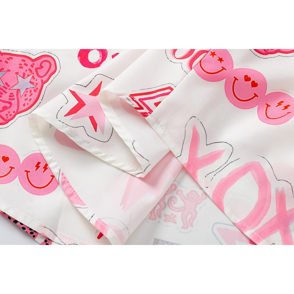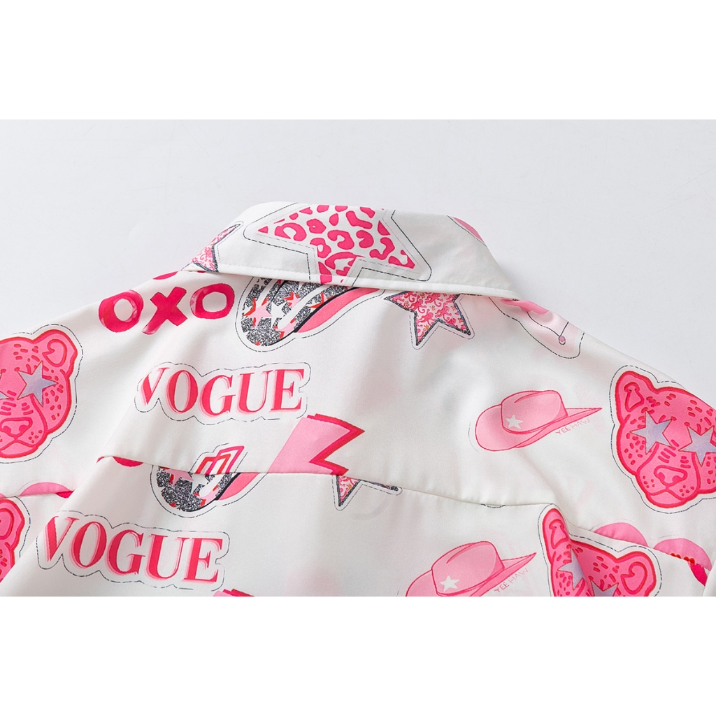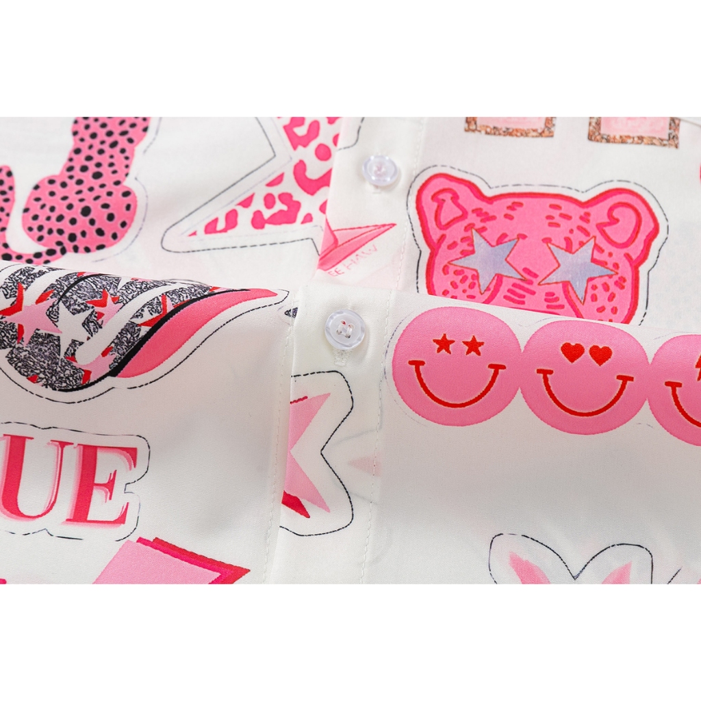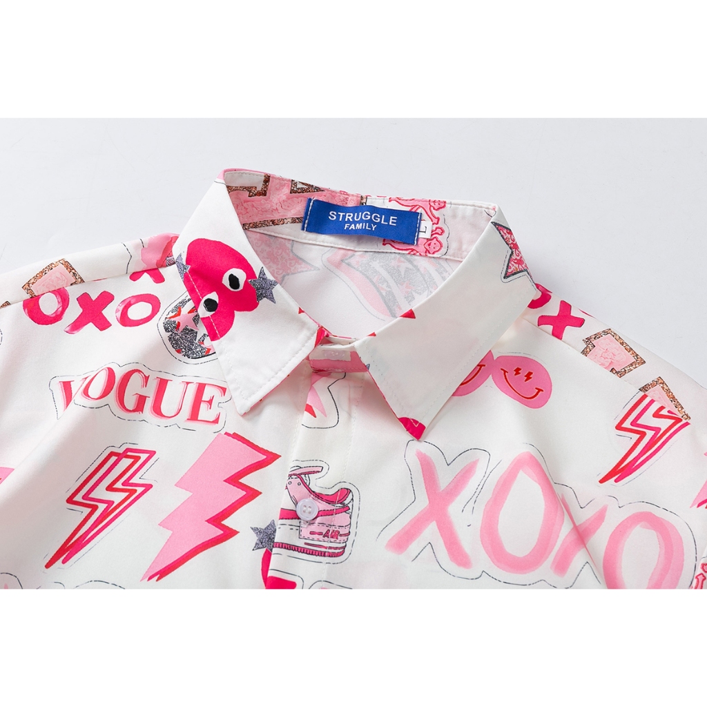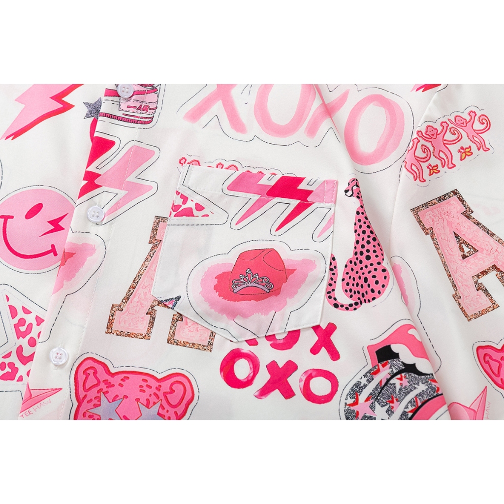 【K-2】粉紅泡泡 XOXO 笑臉 閃電 滿版 短袖襯衫 個性 穿搭 春夏 表演 舞台 特色【J2560】
