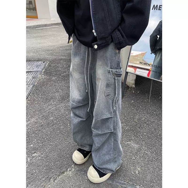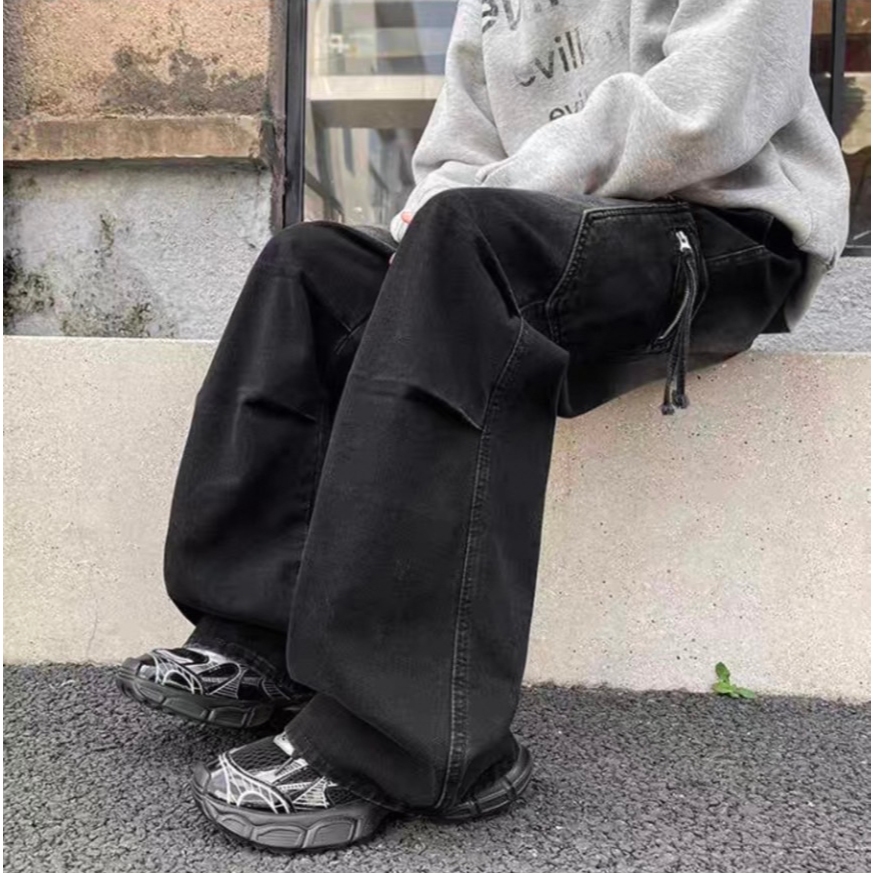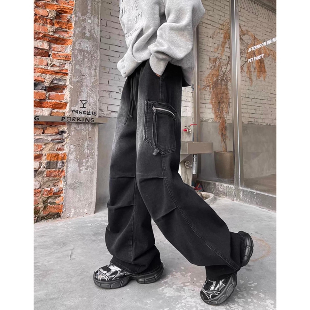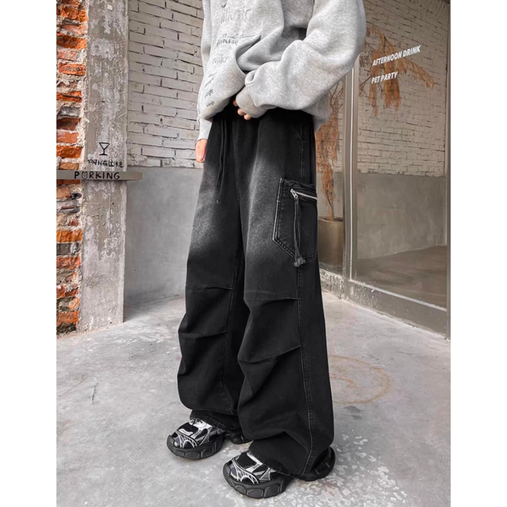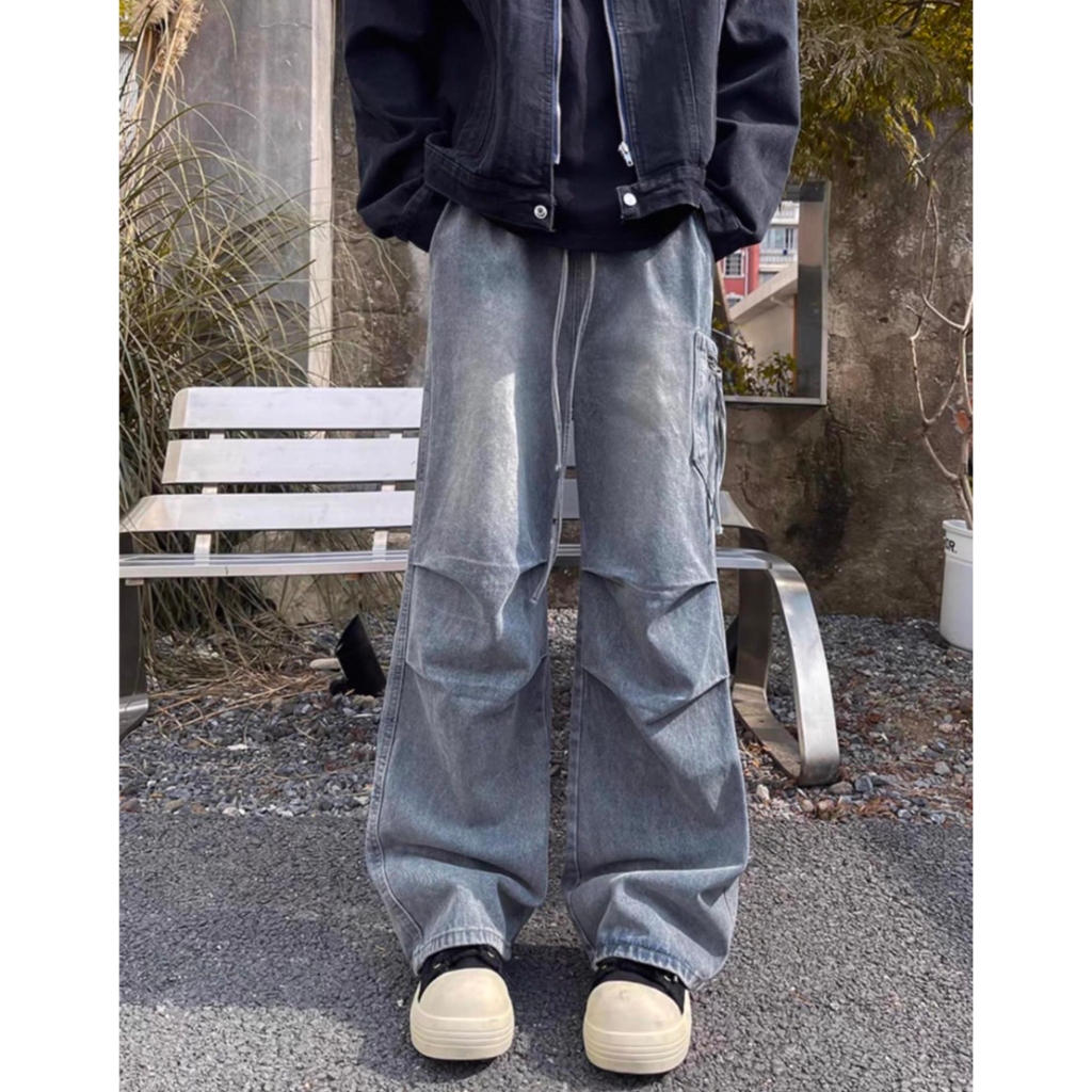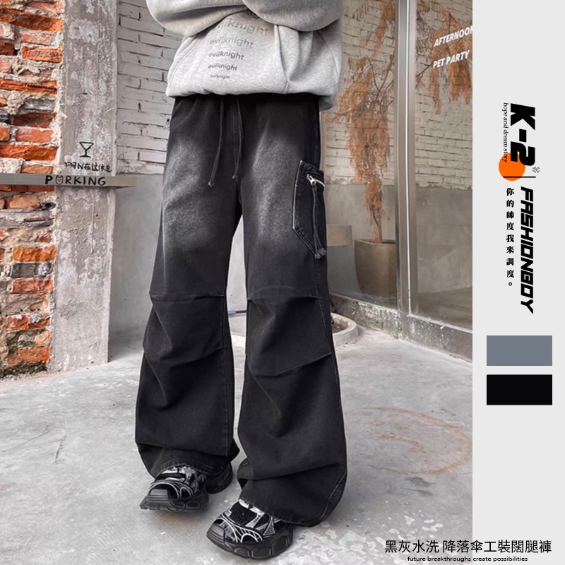 【K-2】傘兵皺褶 工裝牛仔褲 刷色 闊腿 VIBE風 復古水洗 牛仔褲 傘兵褲 牛仔長褲 休閒長褲 工作褲【J808】藍色,M|藍色,L|藍色,XL|藍色,XXL|黑色,M|黑色,L|黑色,XL|黑色,XXLK-2 Fashionboy