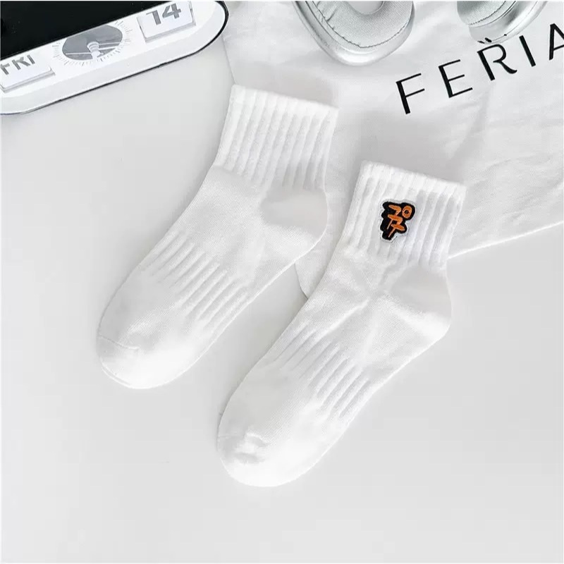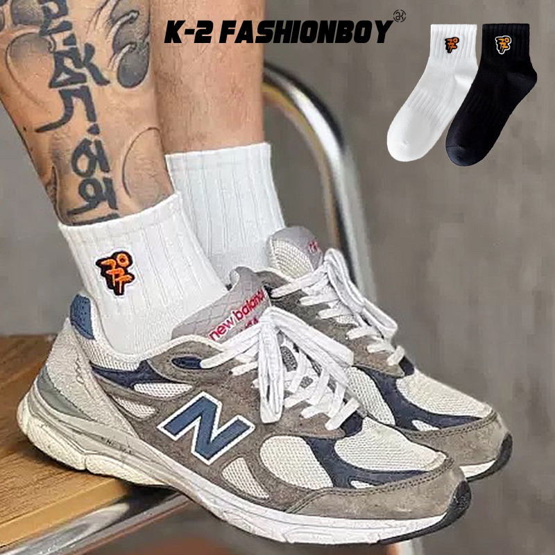 【K-2】77 刺繡 小LOGO 潮流 中筒襪 襪子 刺繡襪 運動 健身 潮流襪 滑板 街頭 穿搭 襪【KM206】白色|黑色K-2 Fashionboy