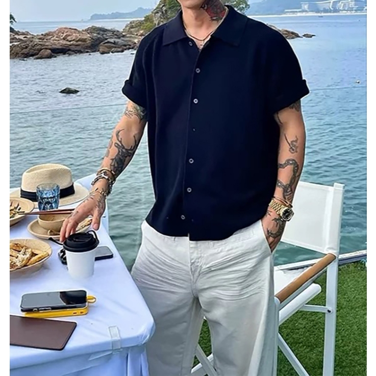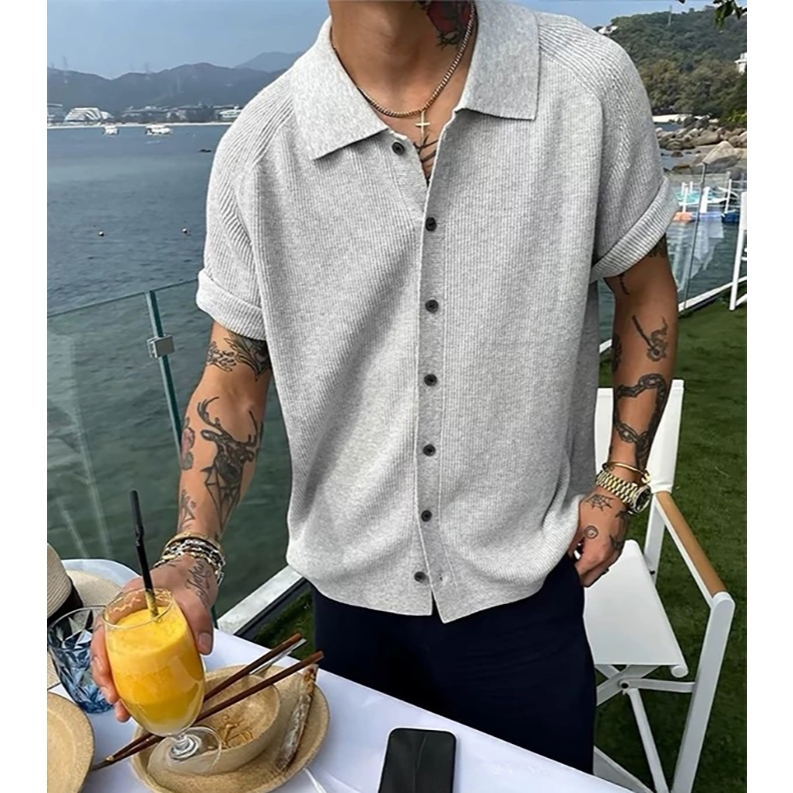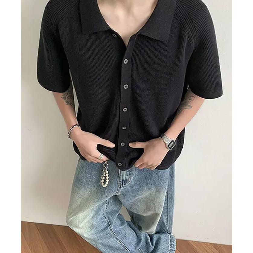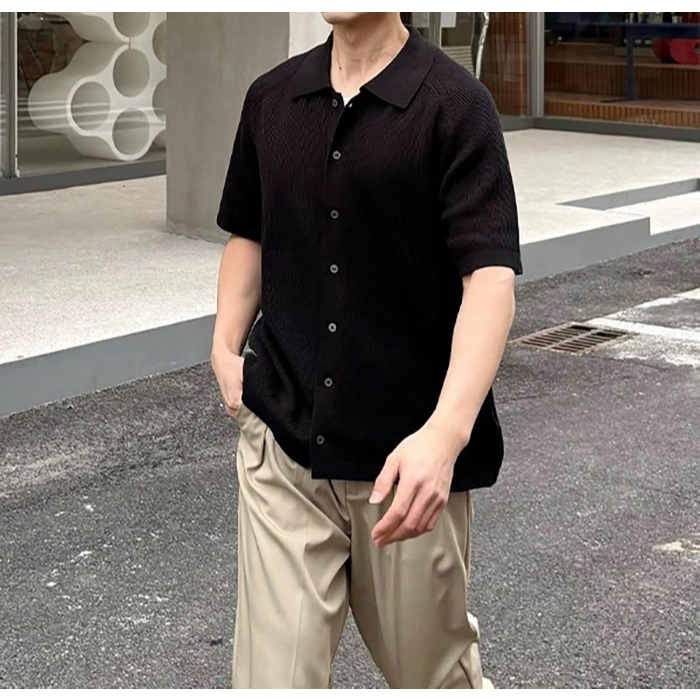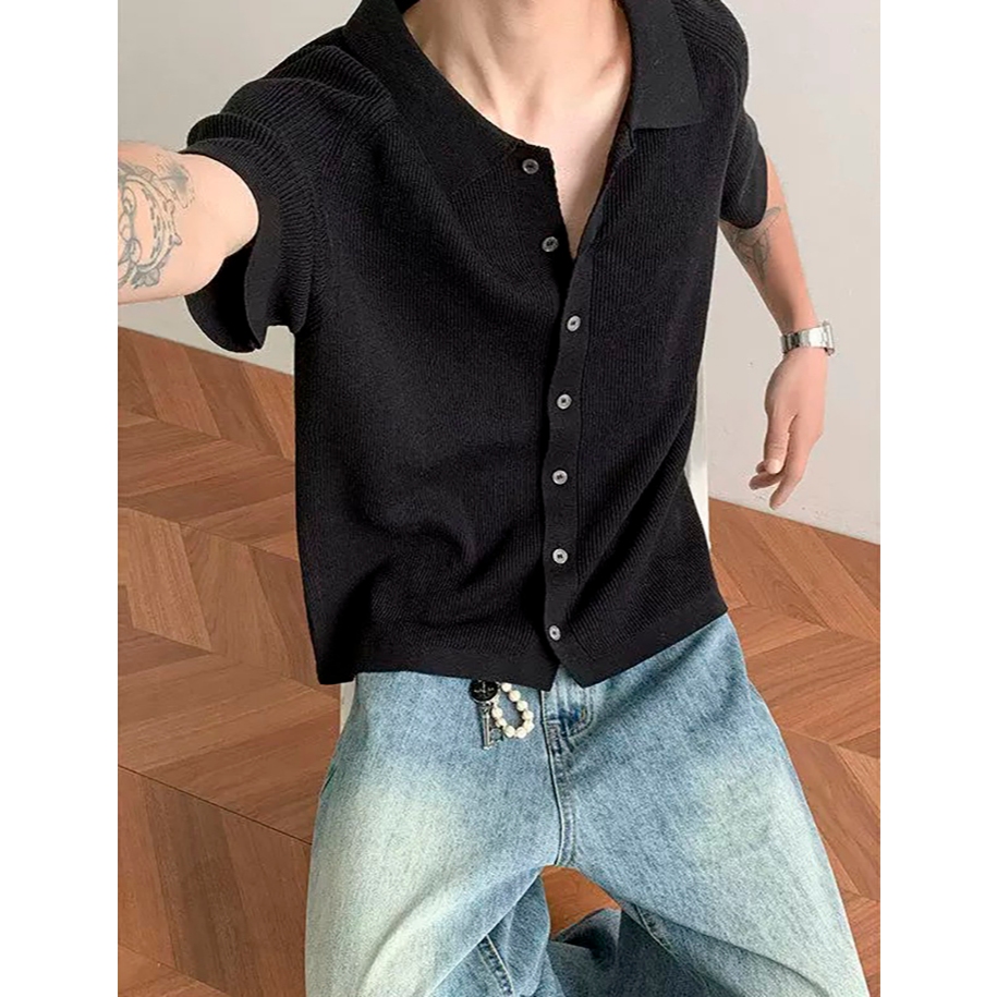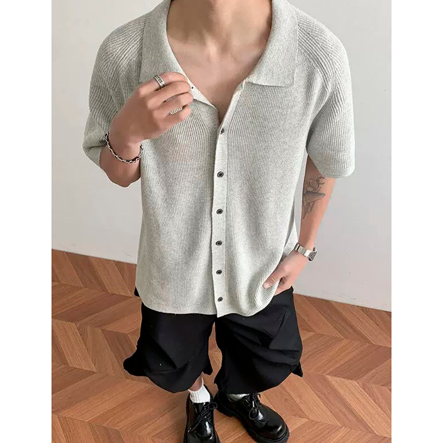 【K-2】cleanfit boxy 短版 合身 針織襯衫 短袖襯衫 針織 罩衫 Y2K 文青 穿搭 襯衫【J501】灰色,M|灰色,L|黑色,M|黑色,LShirtsK-2 Fashionboy