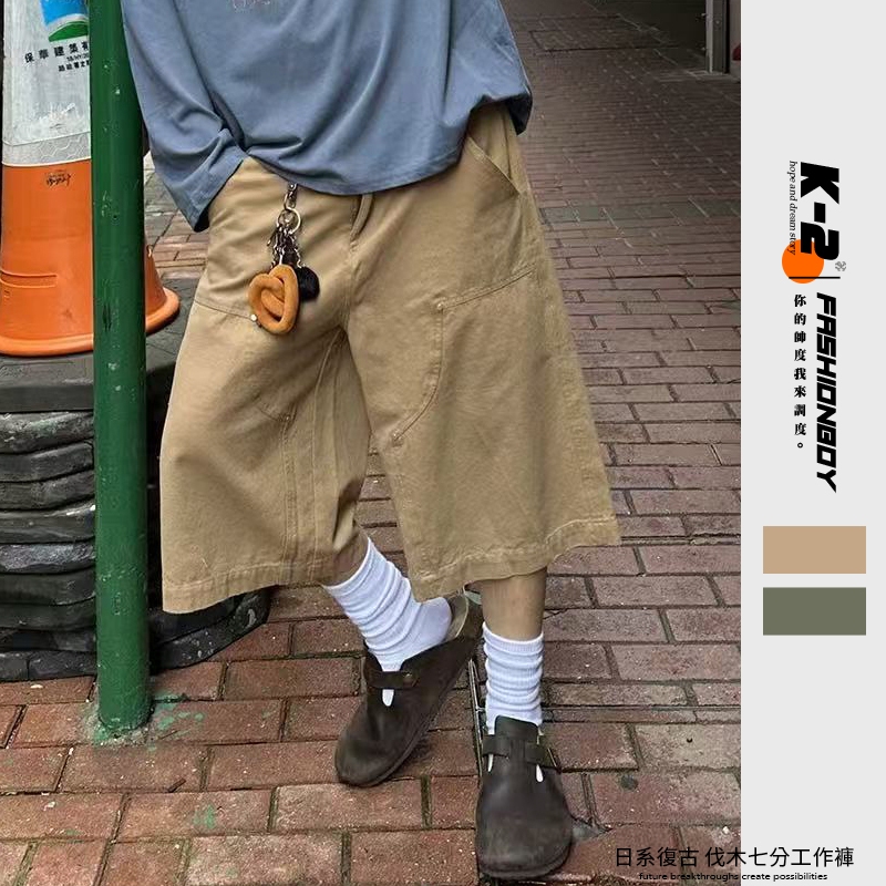 【K-2】cityboy 日系復古 工裝七分褲 伐木工作褲 工作褲 七分褲 休閒短褲 Y2K 復古短褲 短褲【JD80】卡其色,M|卡其色,L|卡其色,XL|卡其色,XXL|綠色,M|綠色,L|綠色,XL|綠色,XXLK-2 Fashionboy