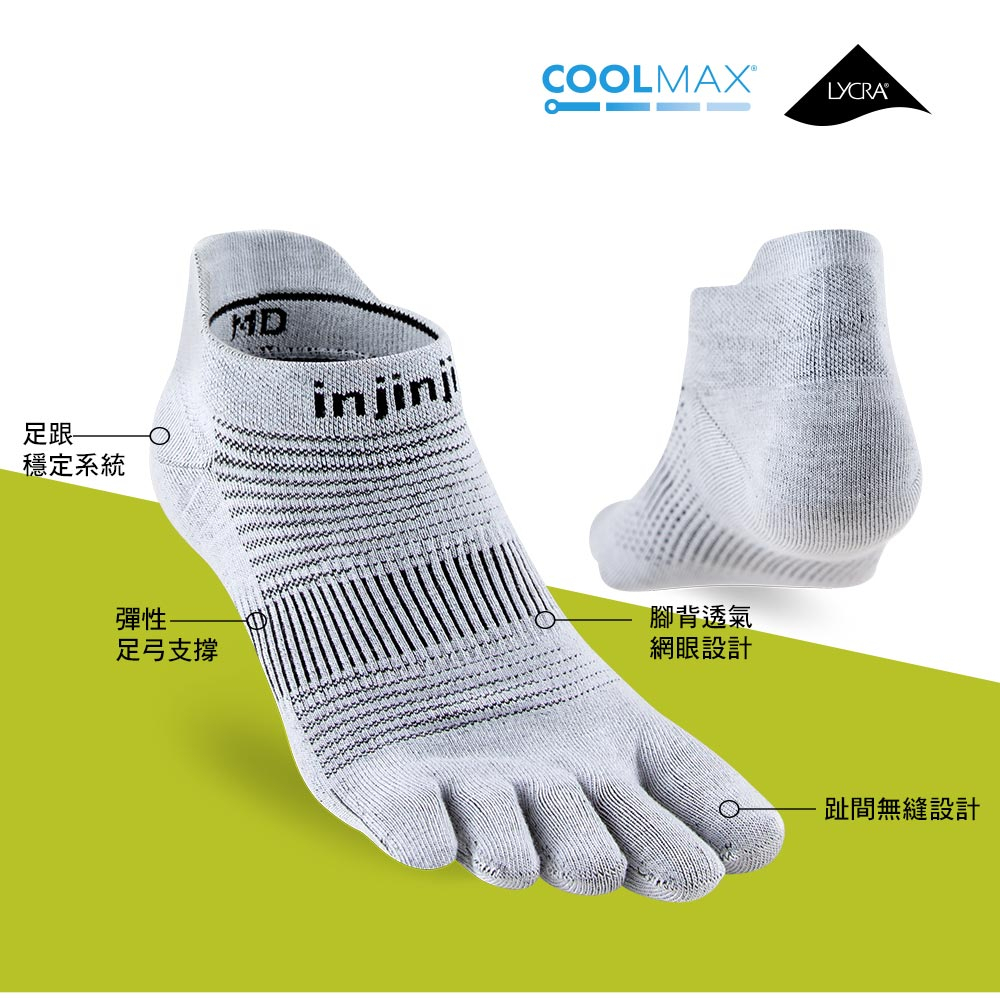 【injinji】Run吸排五趾隱形襪NX (灰色) – NAA16 | COOLMAX 快乾 輕量 吸濕排汗 標準款灰色,L|灰色,S|灰色,MGOHIKING戶外用品專賣店