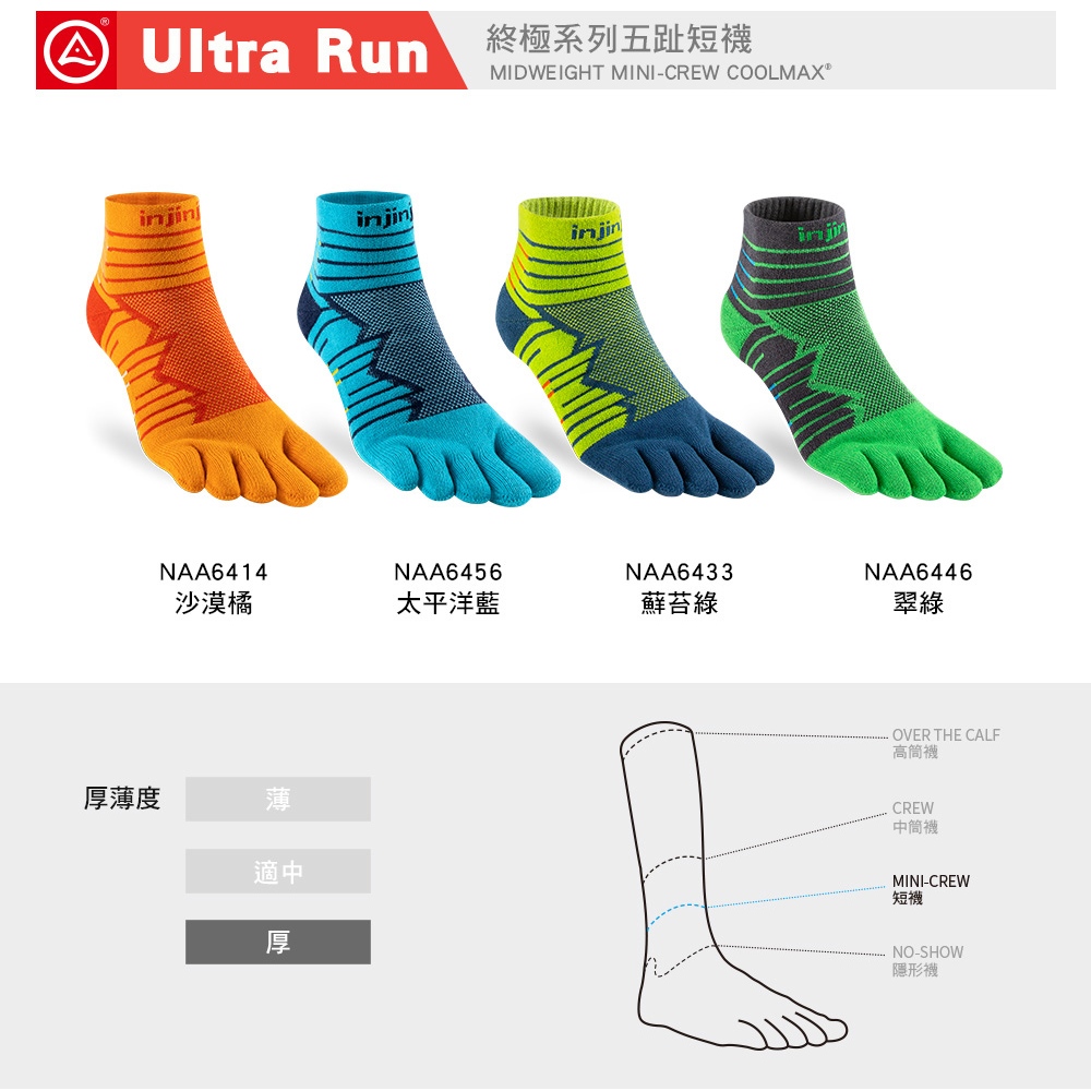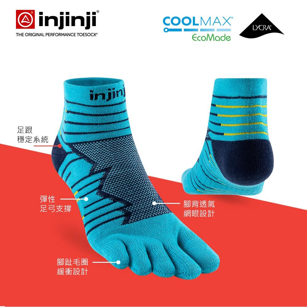 【injinji】Ultra Run終極系列五趾短襪(太平洋藍)-NAA6456|避震緩衝 推薦路跑用 慢跑 馬拉松襪S|M|LGOHIKING戶外用品專賣店