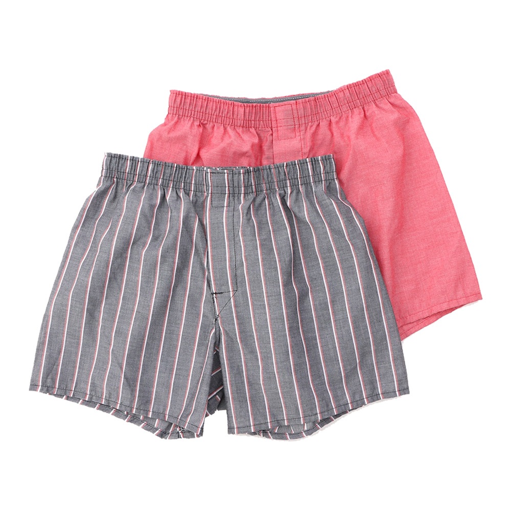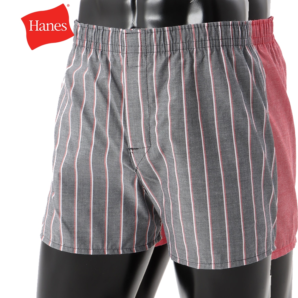 【Hanes】GLOBAL VALUE系列 平口內著四角褲2件組 經典設計款(紅色素面x灰直條)官方直營M|L|XLUnderwearHanes 台灣官方商城