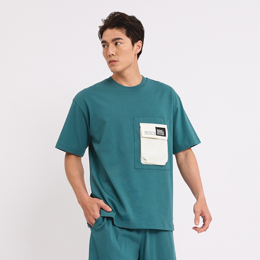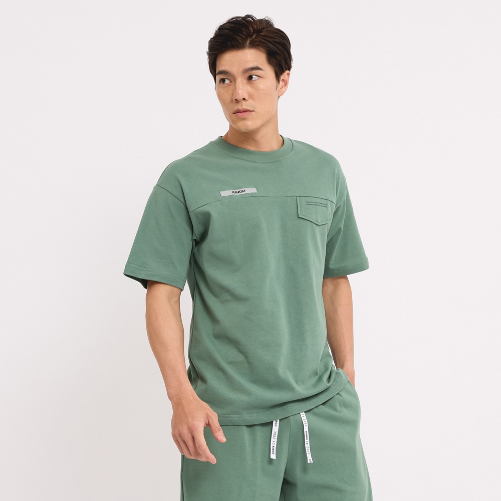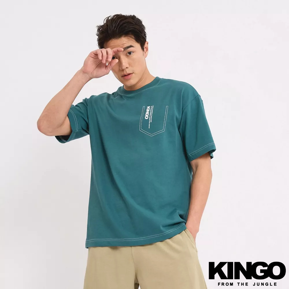 KINGO男款|純棉高磅系列 湖水綠LOGO寬版T恤311004|官方直營