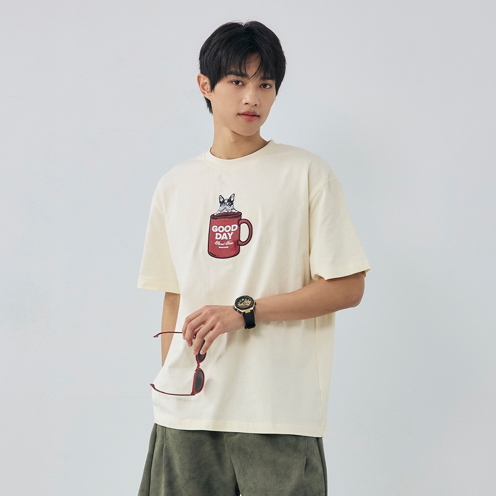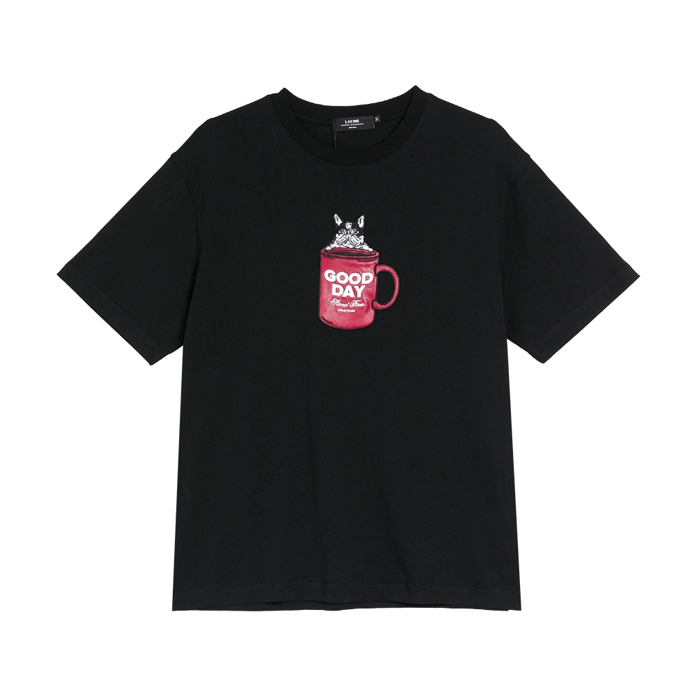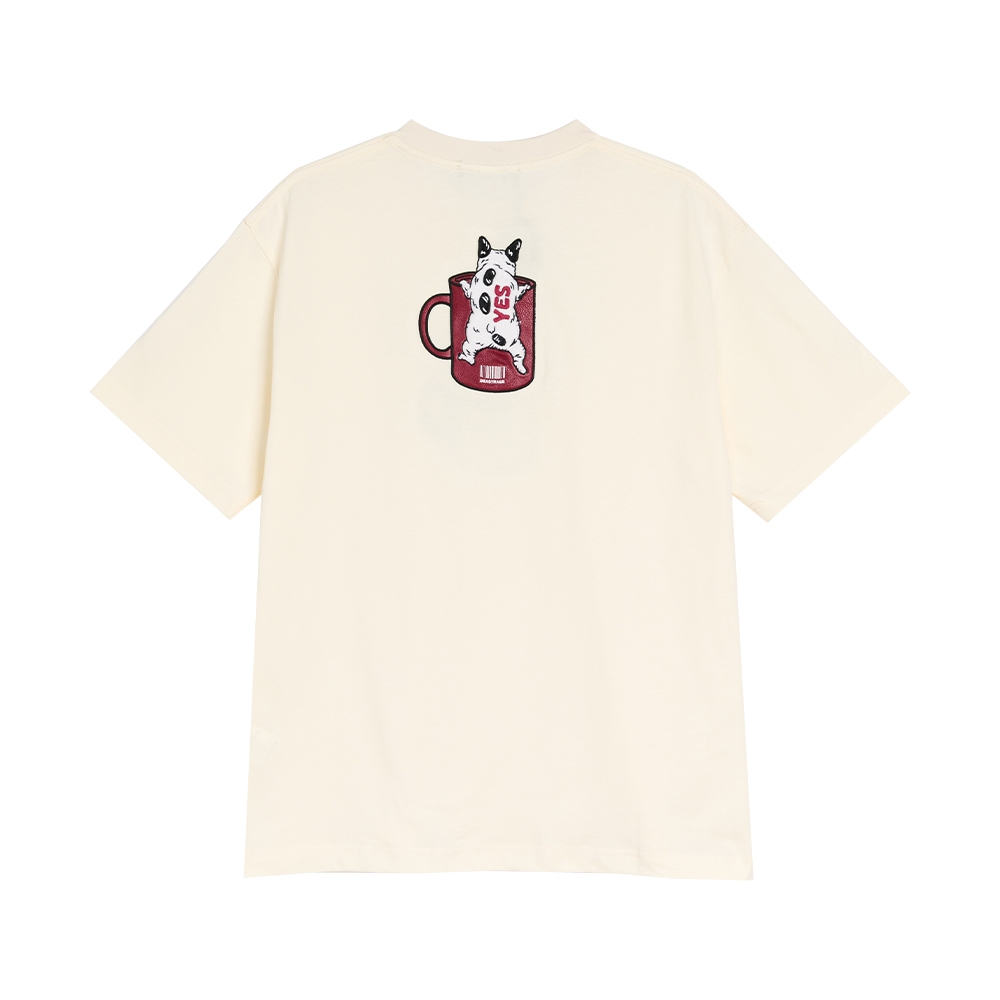 LAKING-設計感狗狗杯子圖案短T黑色,M|黑色,L|黑色,XL|杏色,M|杏色,L|杏色,XLT-ShirtsLAKING官方旗艦店
