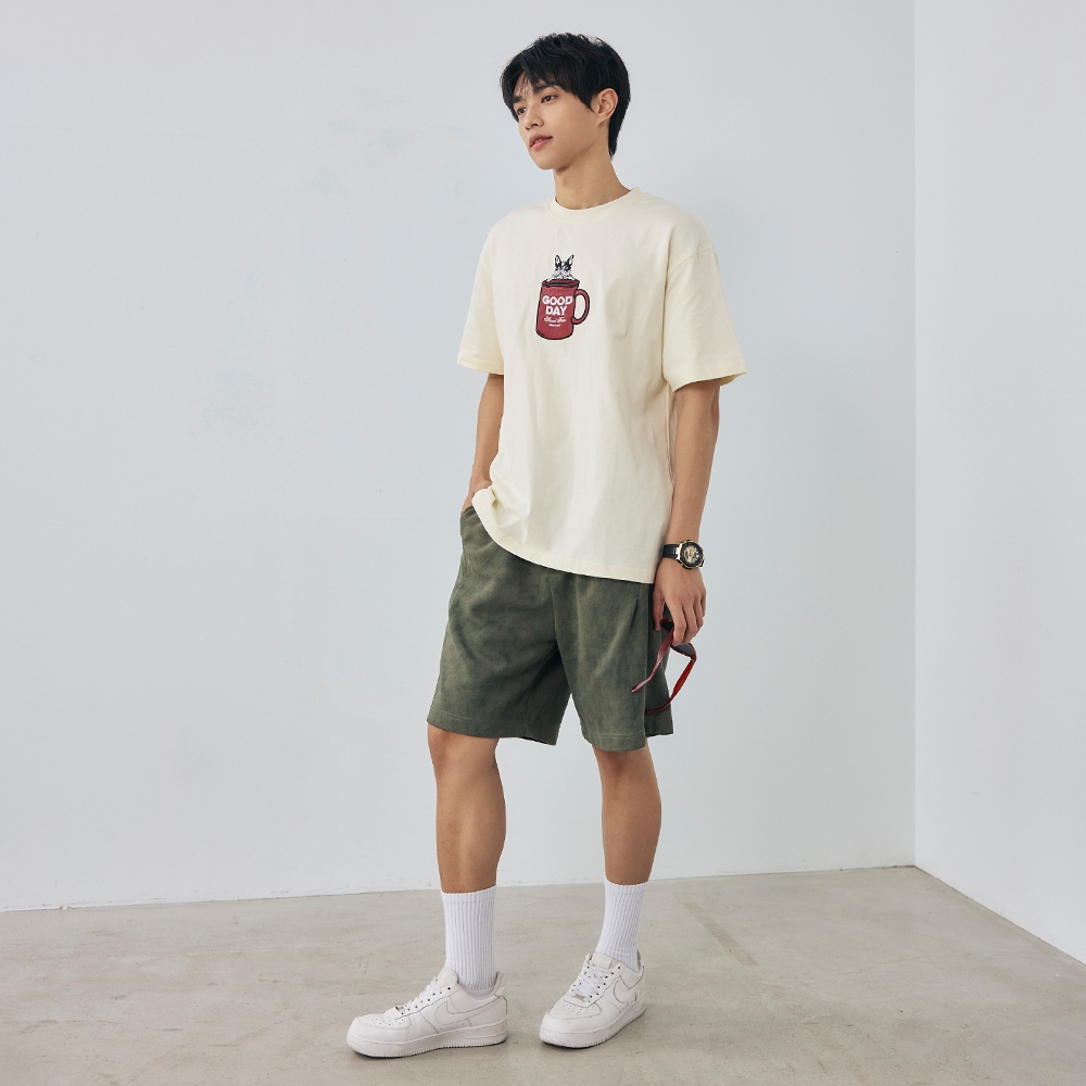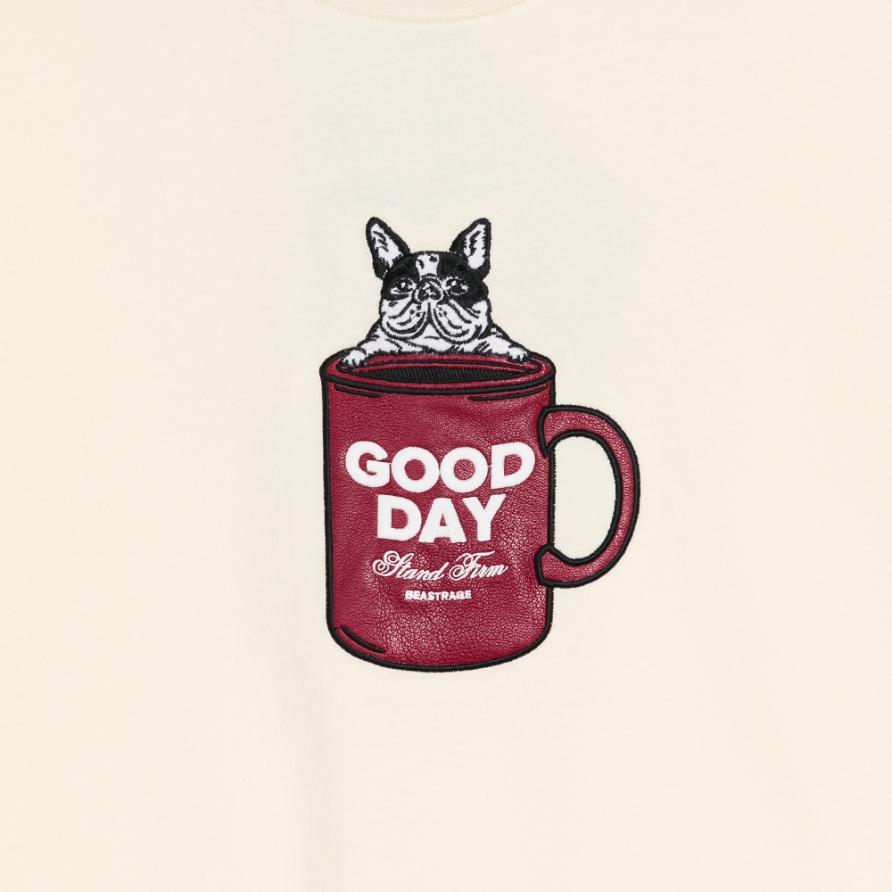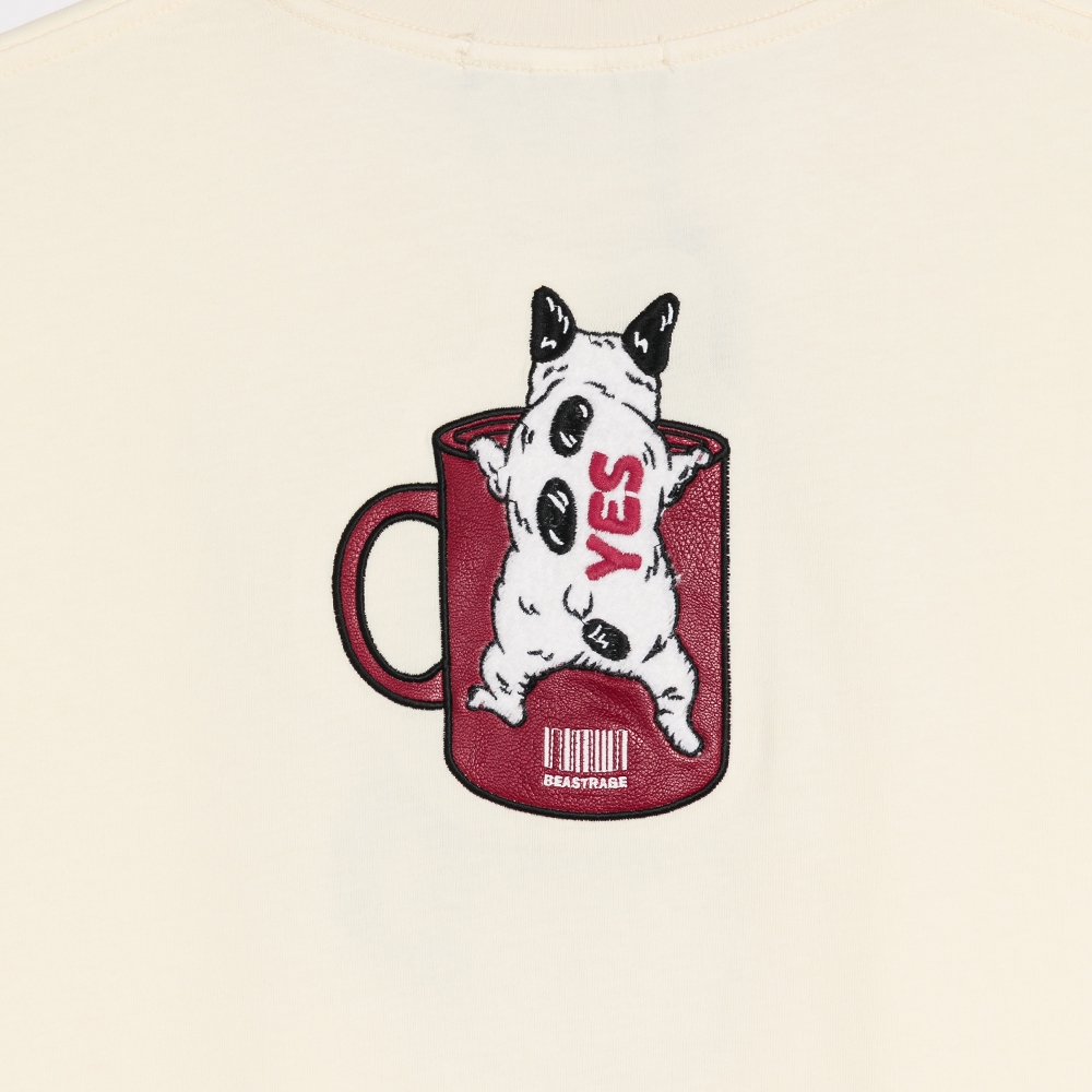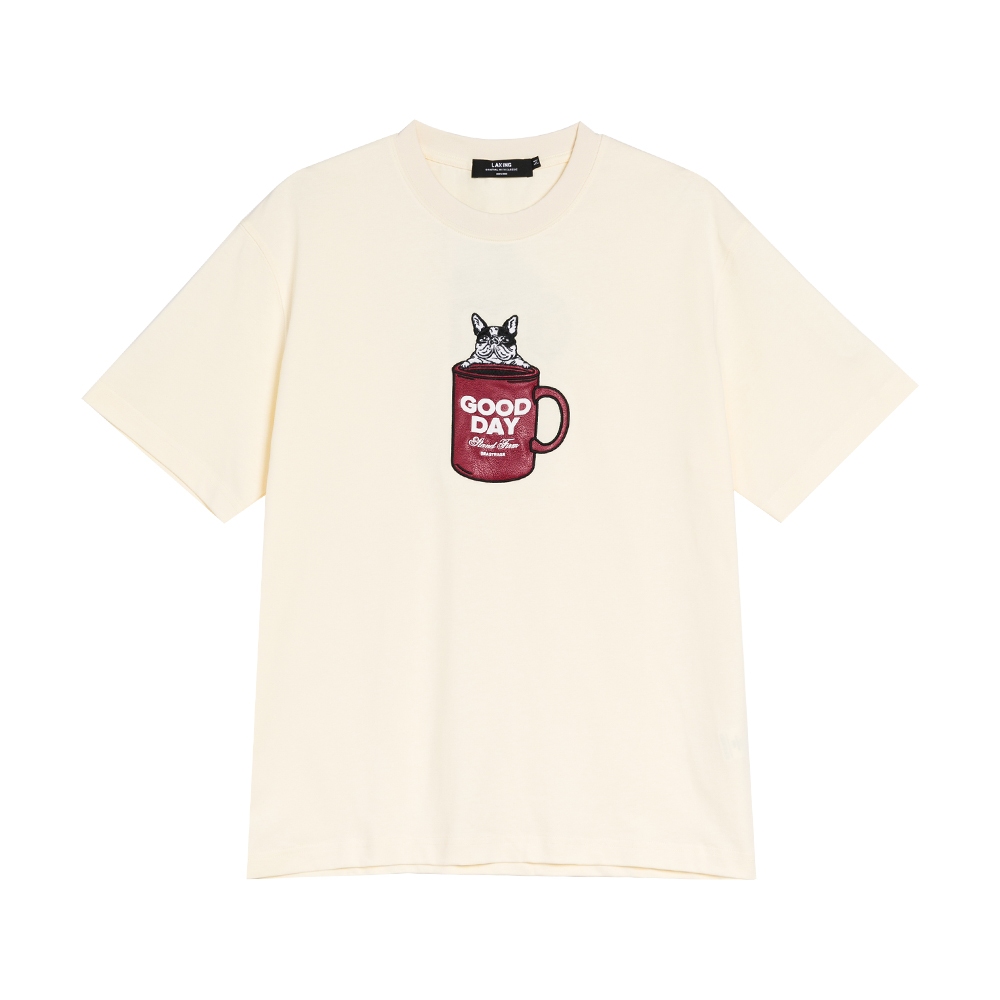 LAKING-設計感狗狗杯子圖案短T黑色,M|黑色,L|黑色,XL|杏色,M|杏色,L|杏色,XLT-ShirtsLAKING官方旗艦店