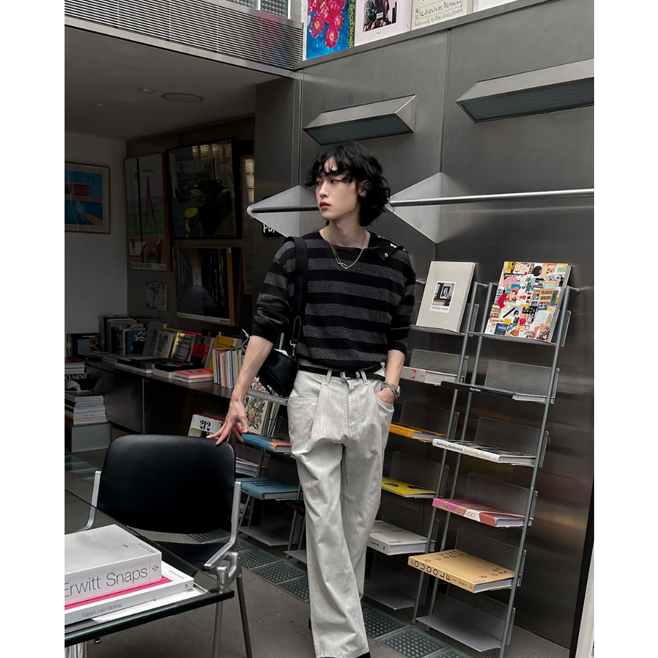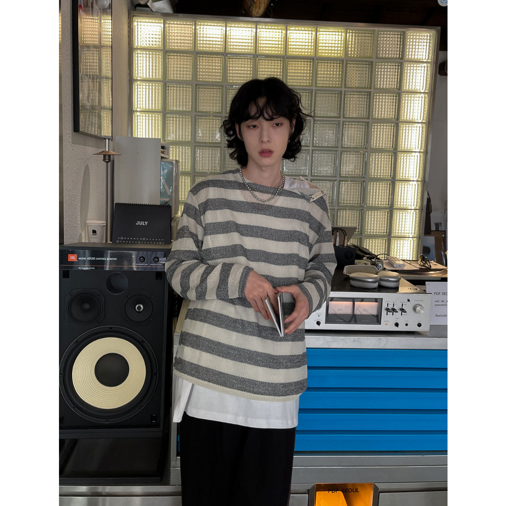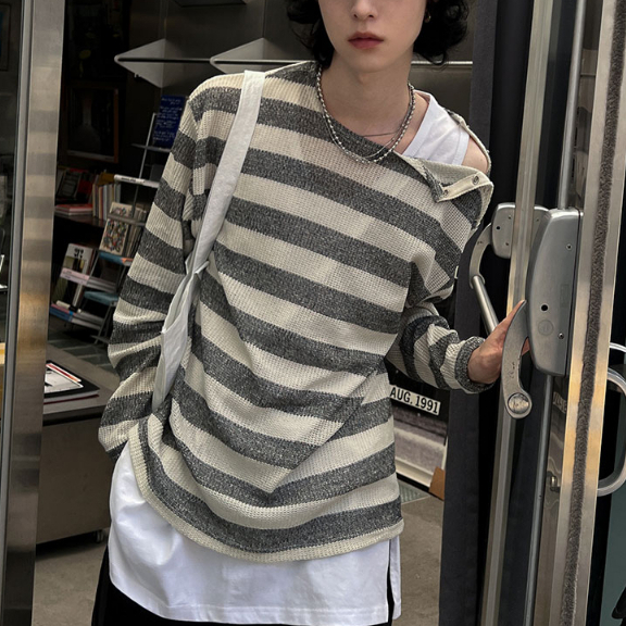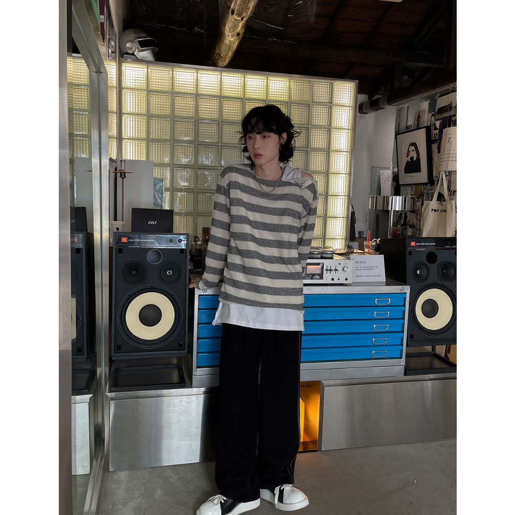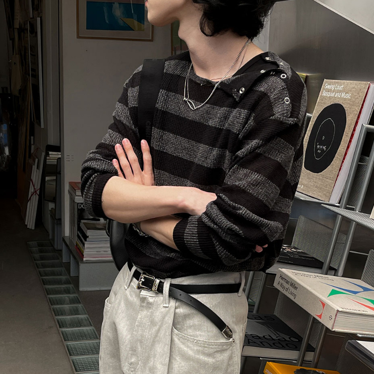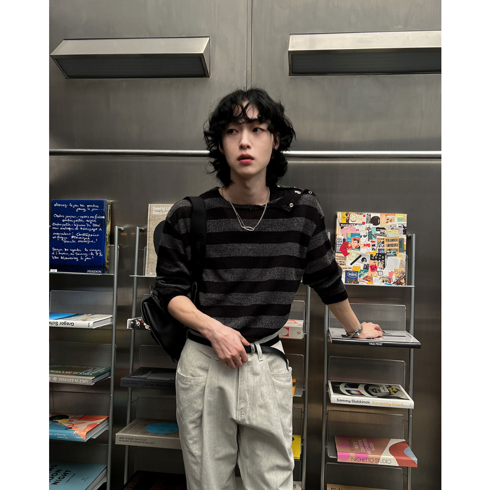 【Metanoia】🇰🇷韓製 肩部扣環條紋輕薄T恤黑色,F|象牙色,FT-ShirtsMetanoia 正韓服飾 & MdoC 總代理