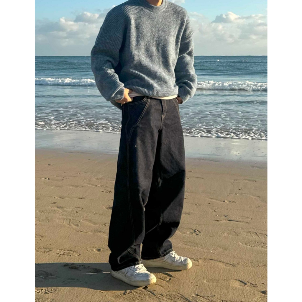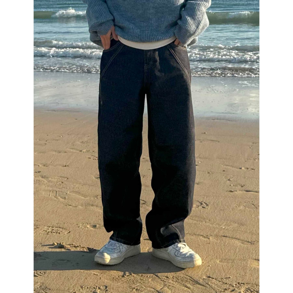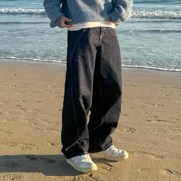 【Metanoia】韓國設計 雙摺縫線落地牛仔褲黑色,S|黑色,M|黑色,LMetanoia 正韓服飾 & MdoC 總代理