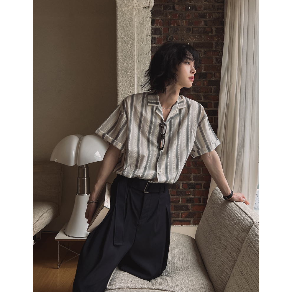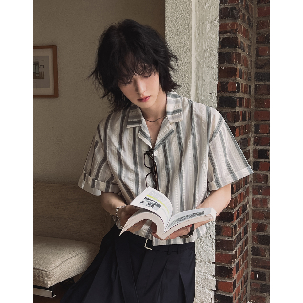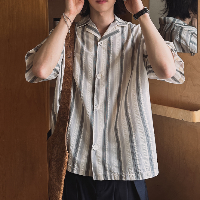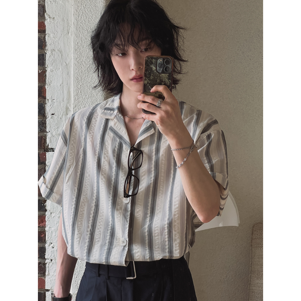 【Metanoia】🇰🇷韓製 古巴領條紋短袖襯衫