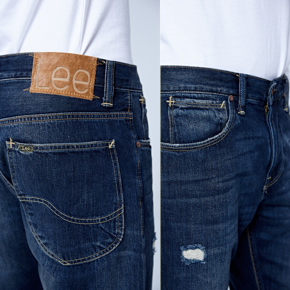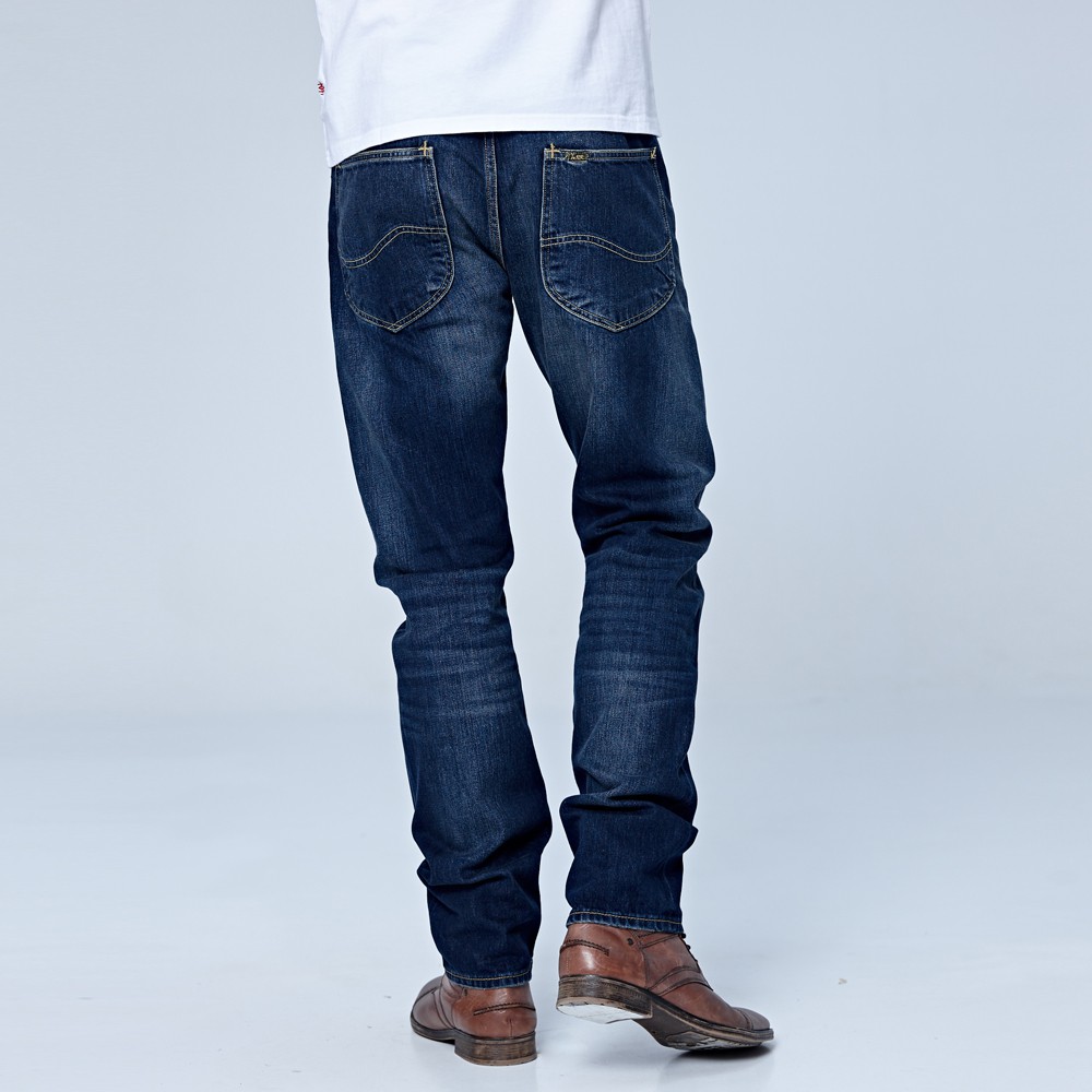 Lee 705 彈性中腰標準小直筒牛仔褲 男 中深藍洗水 LB41706511029|30|31|32|34|36Lee Jeans 品牌旗艦店