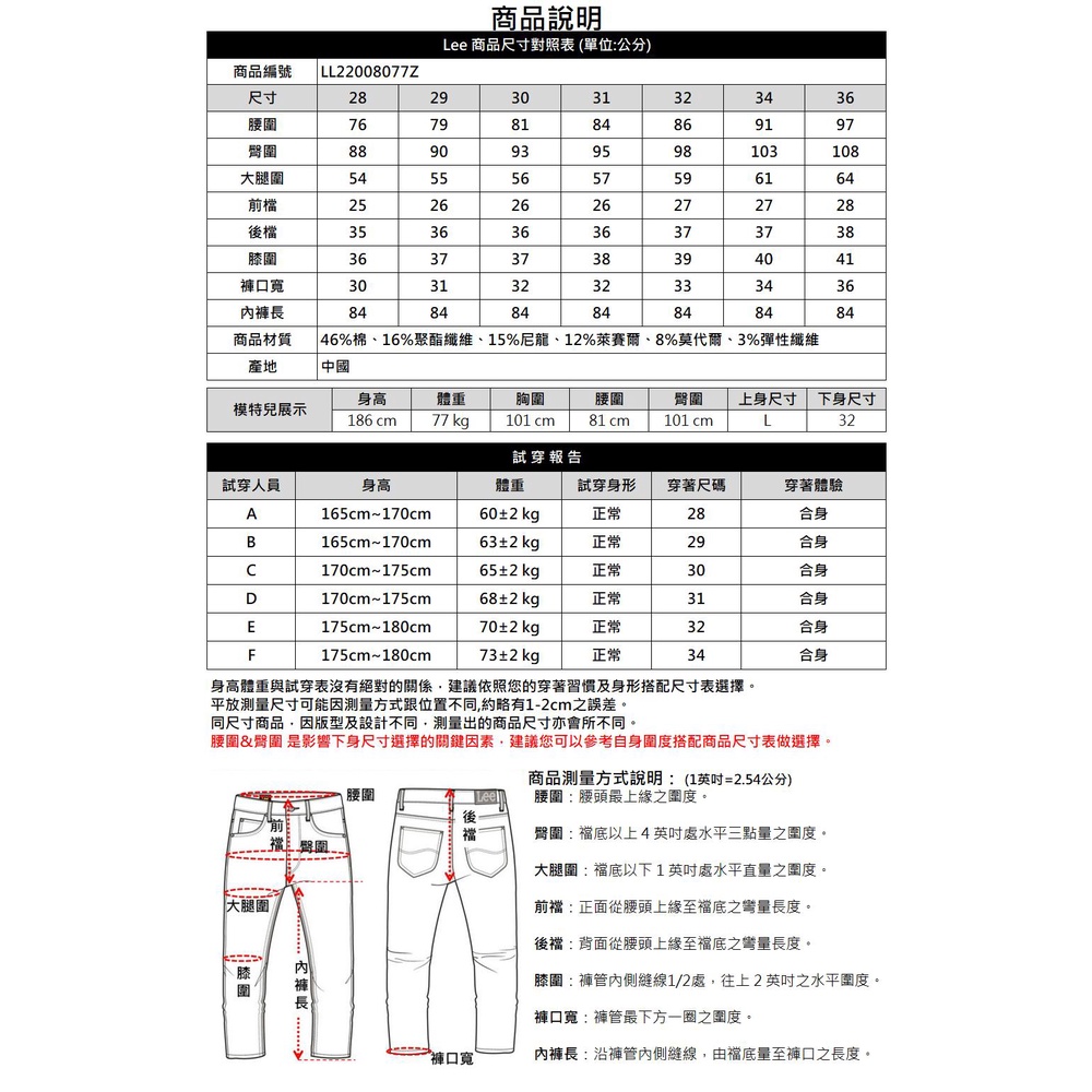Lee 706 彈性低腰合身窄管牛仔褲 男 Modern LL21025089828(腰圍77公分)|29(腰圍80公分)|30(腰圍83公分)|31(腰圍85公分)|32(腰圍88公分)|34(腰圍93公分)Lee Jeans 品牌旗艦店