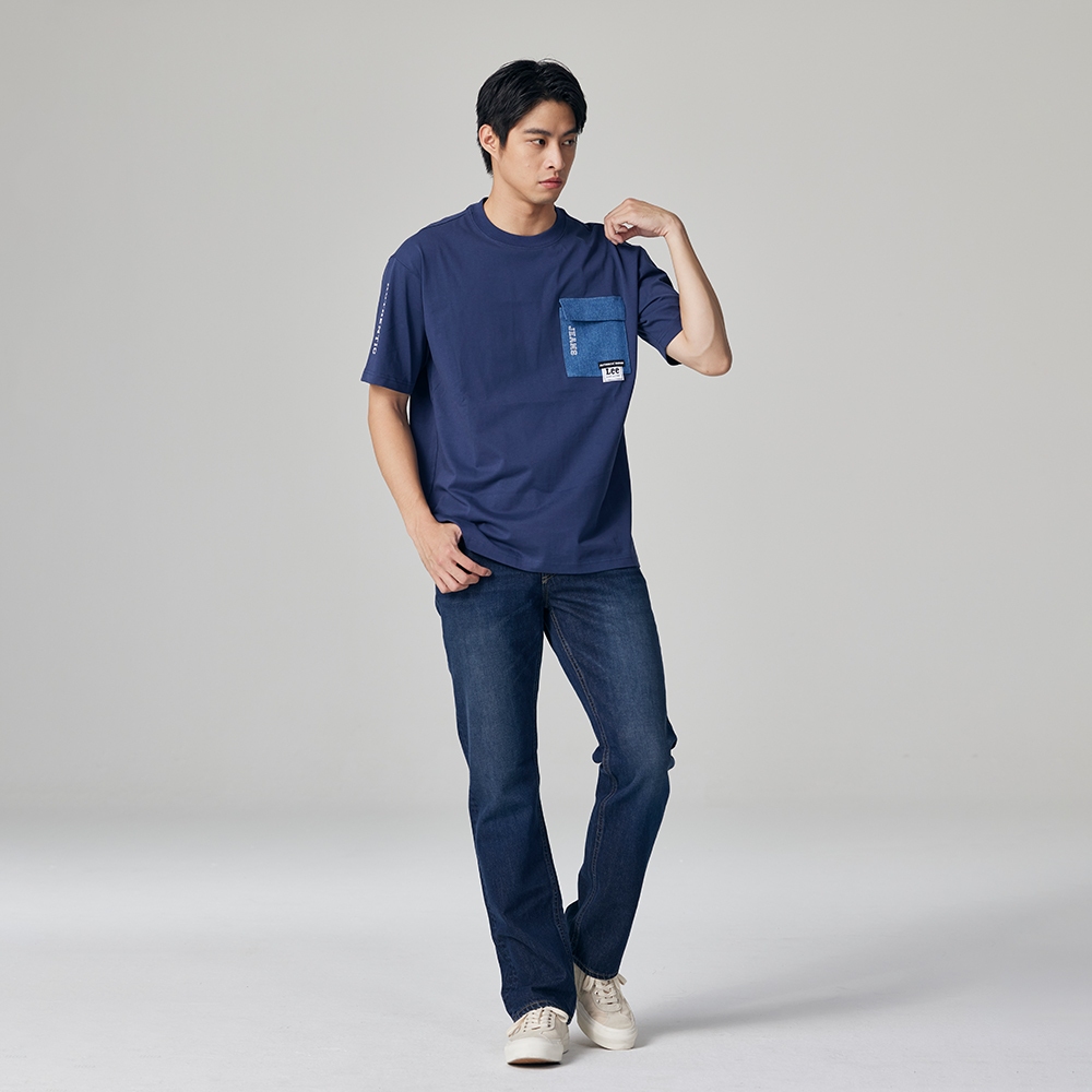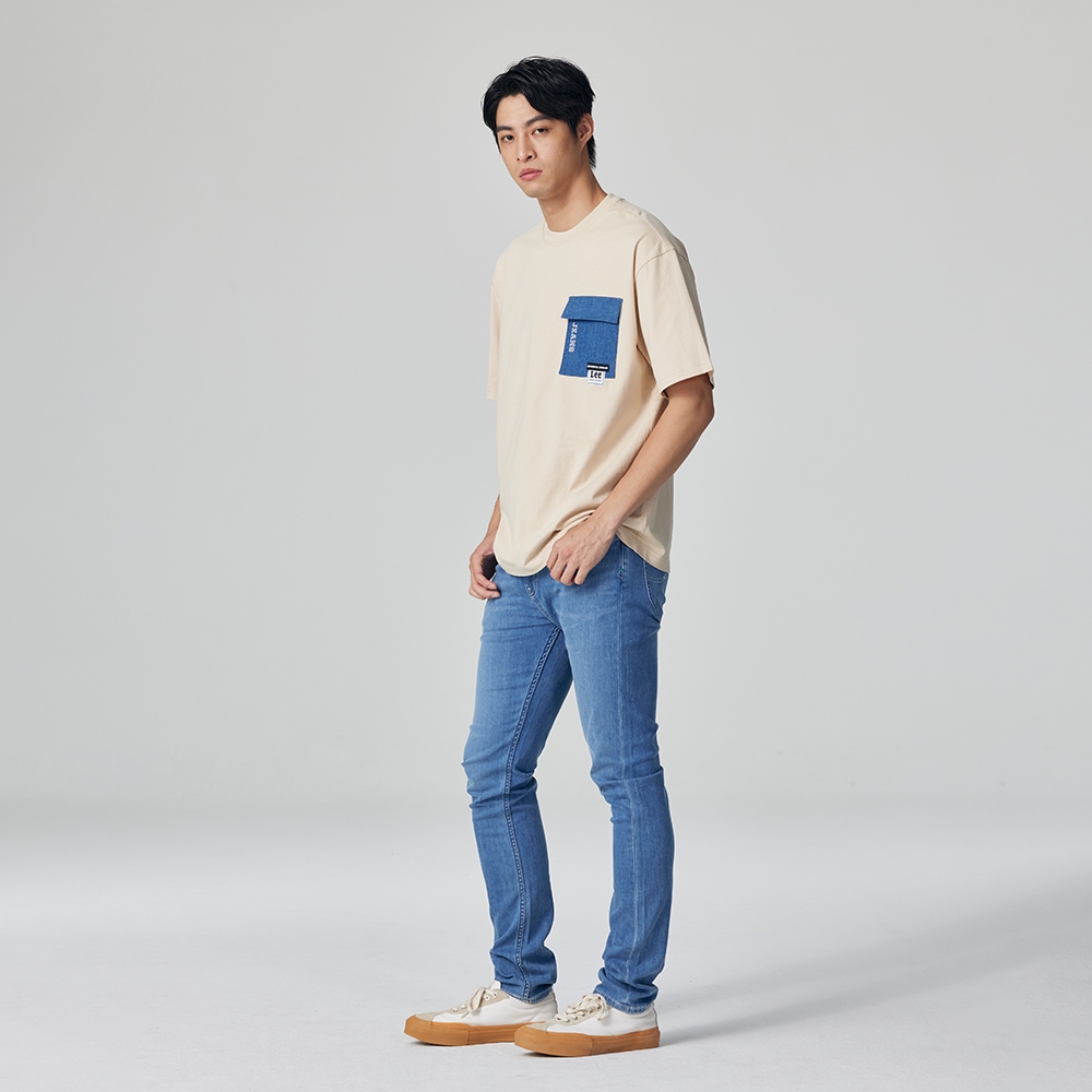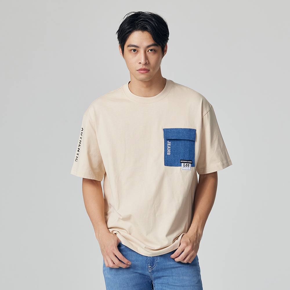 Lee 牛仔口袋寬鬆短袖T恤 男 MODERN 淺卡其 丈青 LB302076
