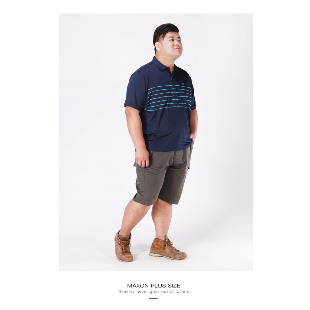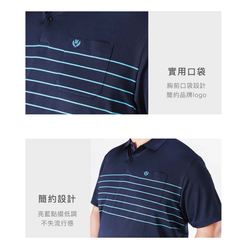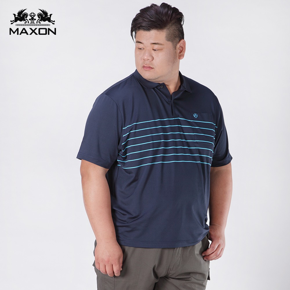 【MAXON】台灣製大尺碼深藍藍條紋彈性吸濕排汗POLO衫XL-6L 加大尺碼polo衫 免運91751-58XL|2L|3L|4L請聊聊|5L|6L請聊聊Polo ShirtsMAXON馬森大尺碼專賣