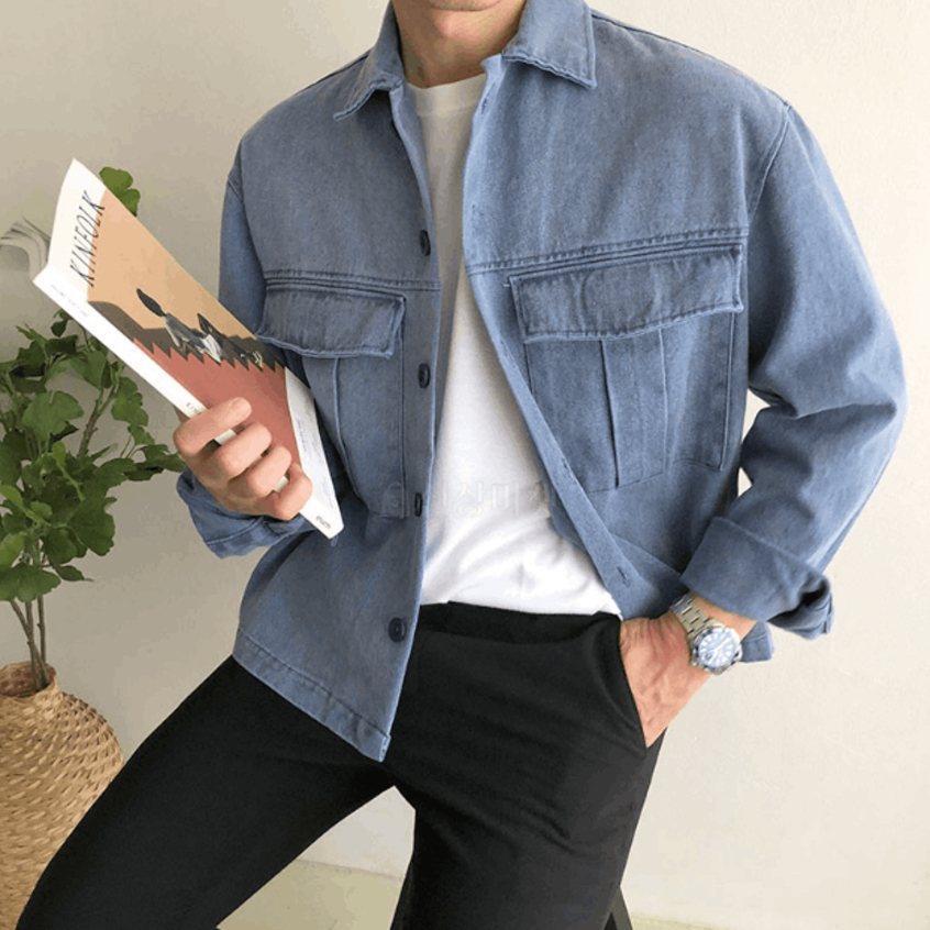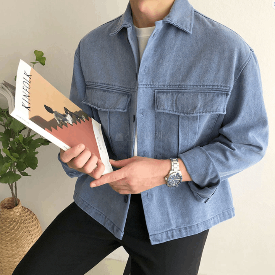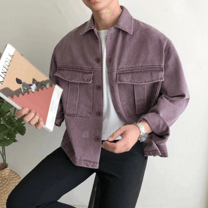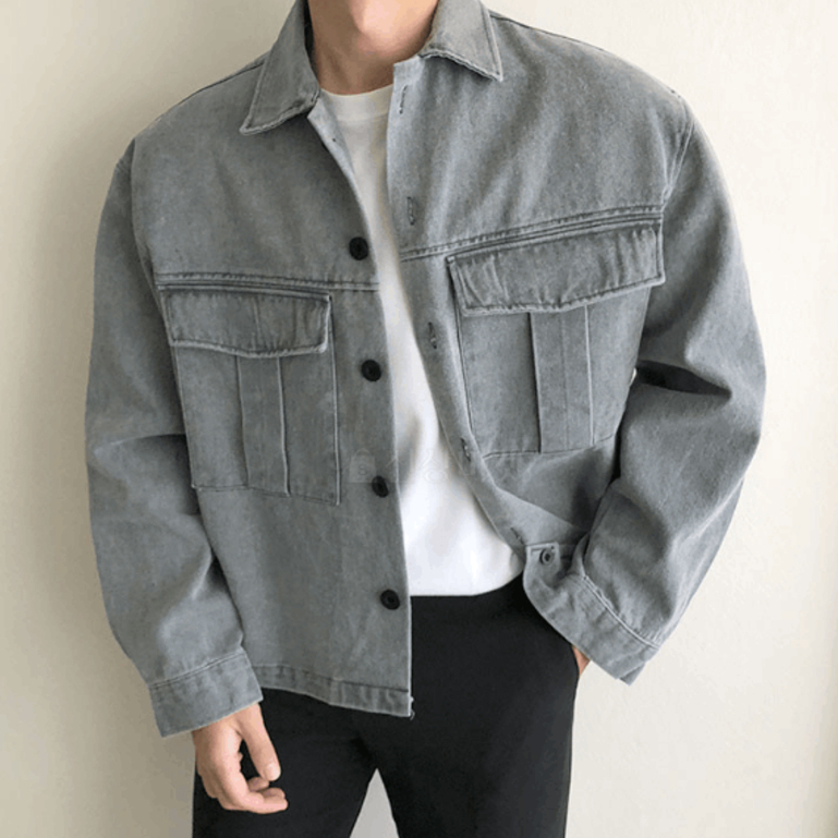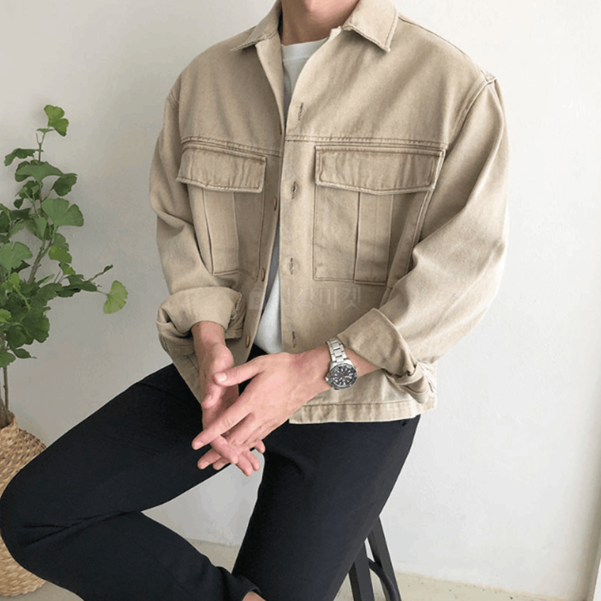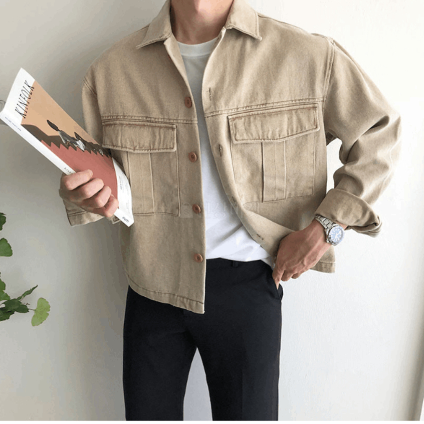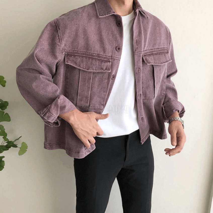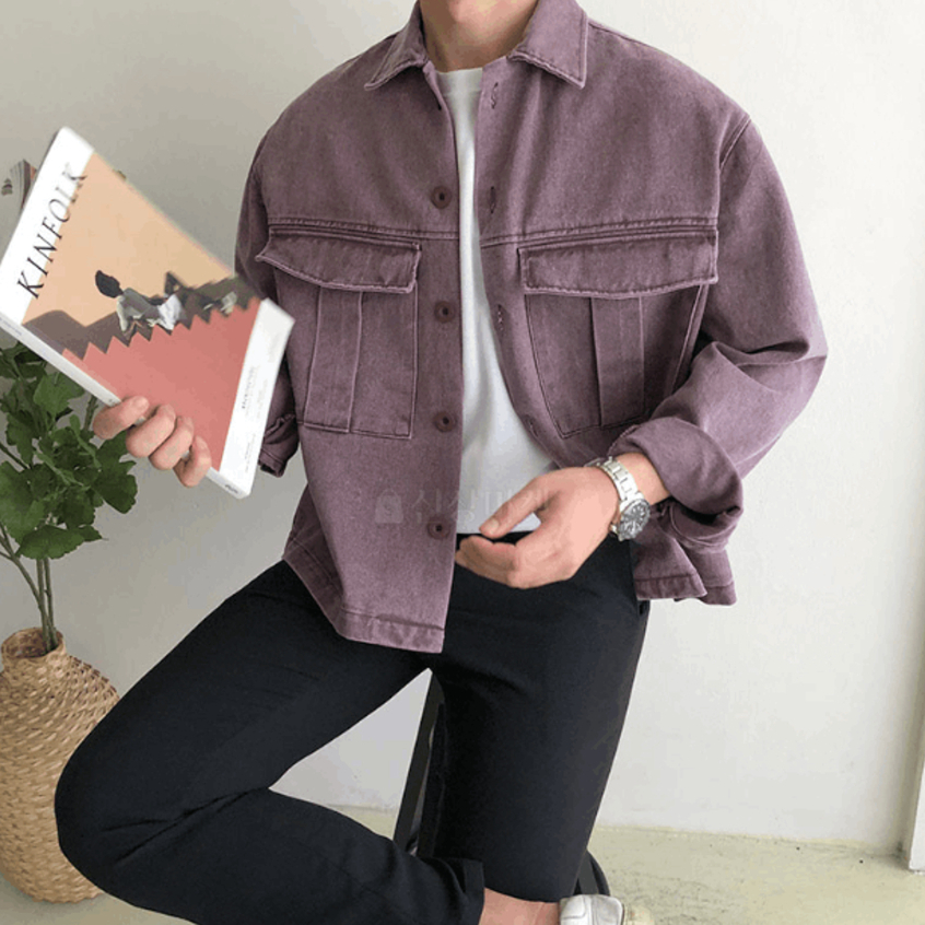 【Metanoia】🇰🇷韓製 翻領短版牛仔夾克外套米色,F|深灰色,F|紫色,F|海軍藍,FJacketsMetanoia 正韓服飾 & MdoC 總代理