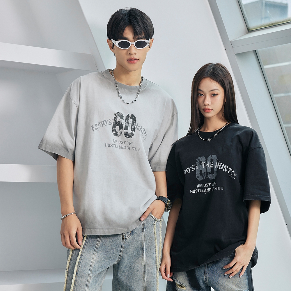LAKING-美式斑駁英文GO水洗短T黑色,M|黑色,L|黑色,XL|灰色,M|灰色,L|灰色,XLT-ShirtsLAKING官方旗艦店