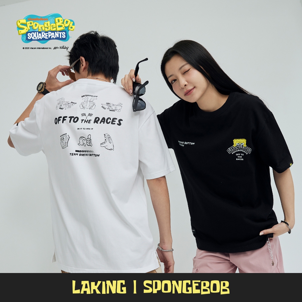 LAKING-海綿寶寶-賽道狂飆短T白色,M|白色,L|白色,XL|黑色,M|黑色,L|黑色,XLT-ShirtsLAKING官方旗艦店