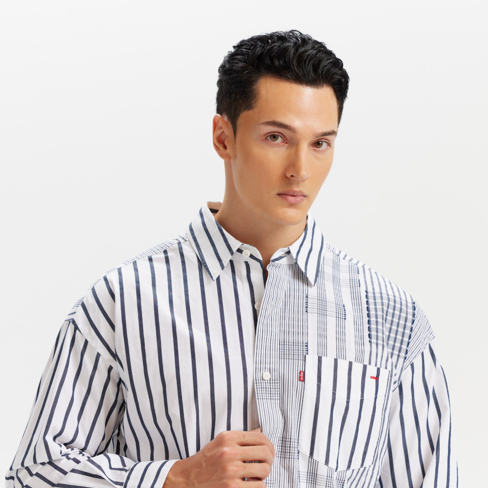 Levi’s® 長袖襯衫 牛津領 條紋襯衫 拼接襯衫 黑條紋 男款 熱賣單品 003MX-0001S|M|L|XL|XSShirtsLevi’s官方旗艦店