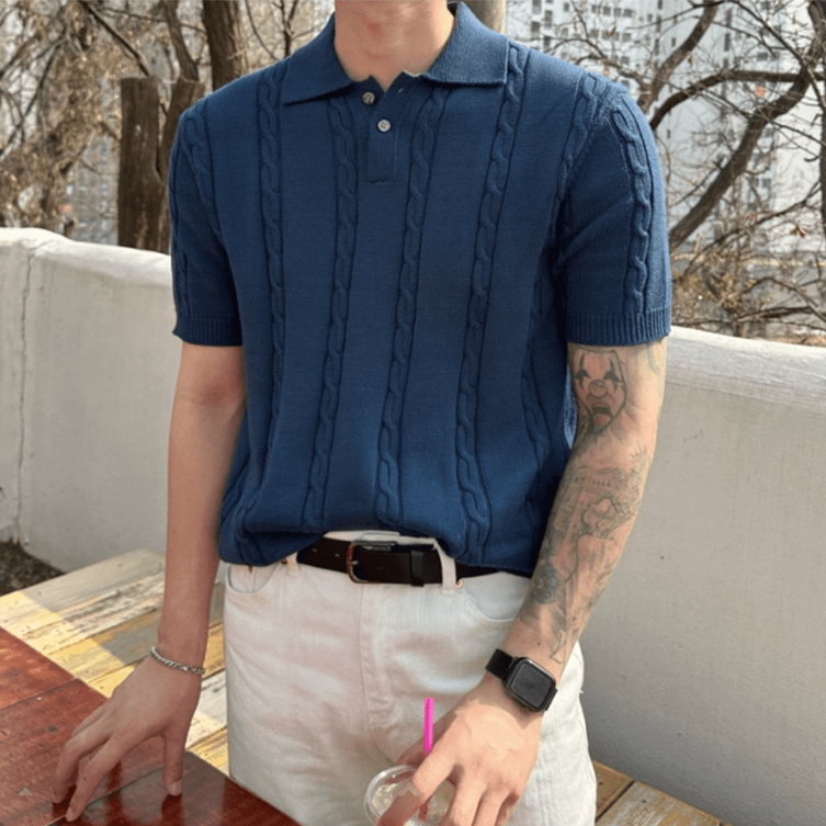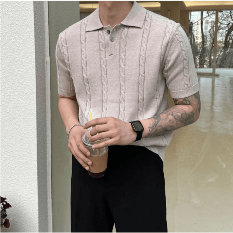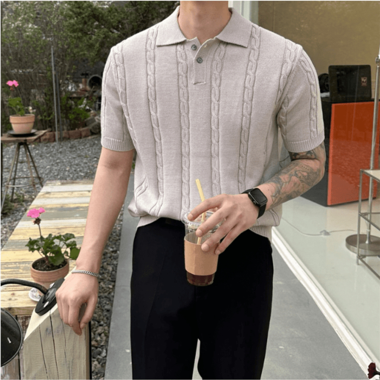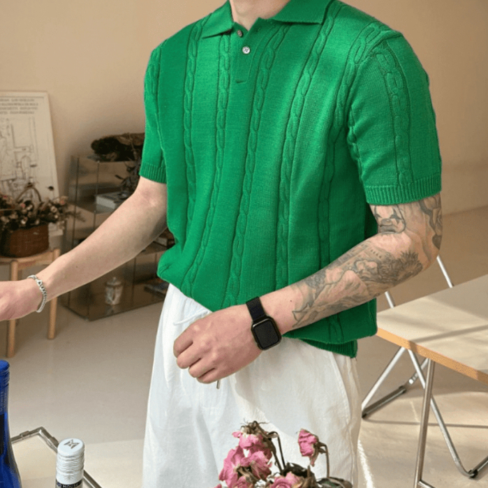 【Metanoia】韓國設計 翻領麻花短袖針織衣象牙色,L|象牙色,XL|燕麥色,L|綠色,XL|墨綠色,XL|黑色,XL|芥末色,XL|藍色,XL|海軍藍,XL|芥末色,L|黑色,L|藍色,L|燕麥色,XL|綠色,L|墨綠色,L|海軍藍,LPolo ShirtsMetanoia 正韓服飾 & MdoC 總代理