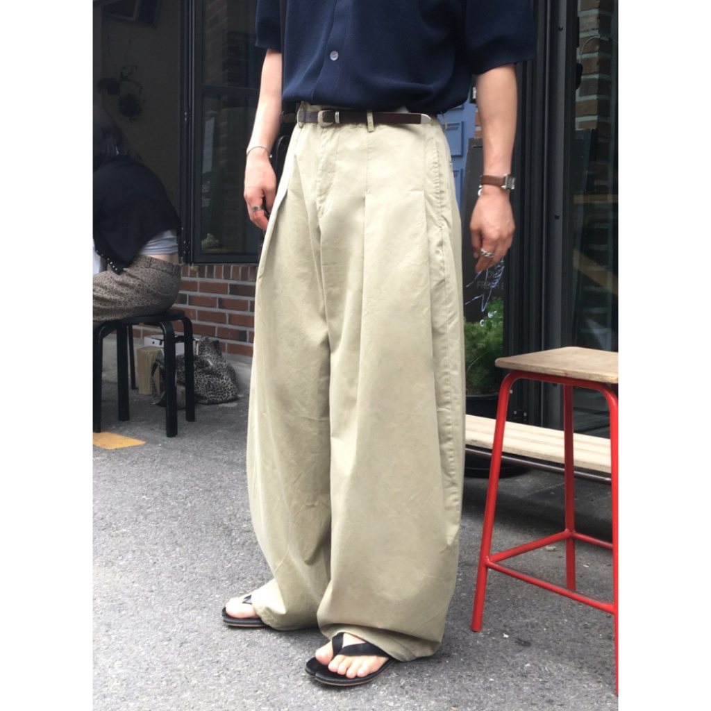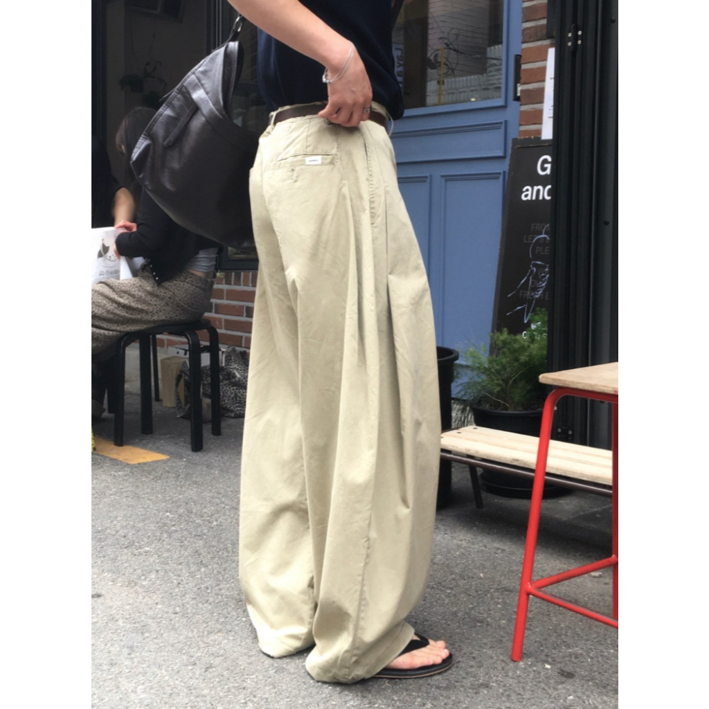 【Metanoia】韓國設計 打褶寬版長褲黑色,M|黑色,L|米色,M|米色,LPantsMetanoia 正韓服飾 & MdoC 總代理