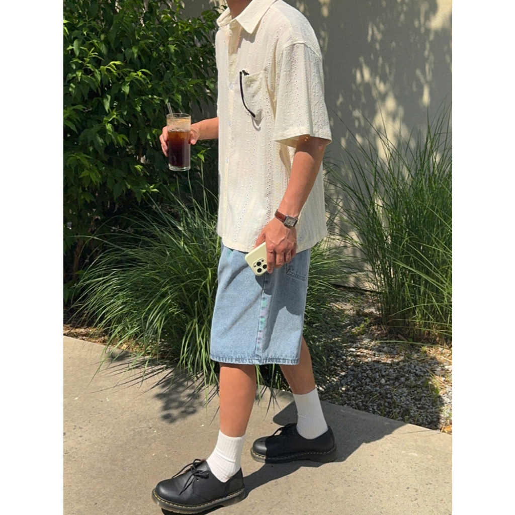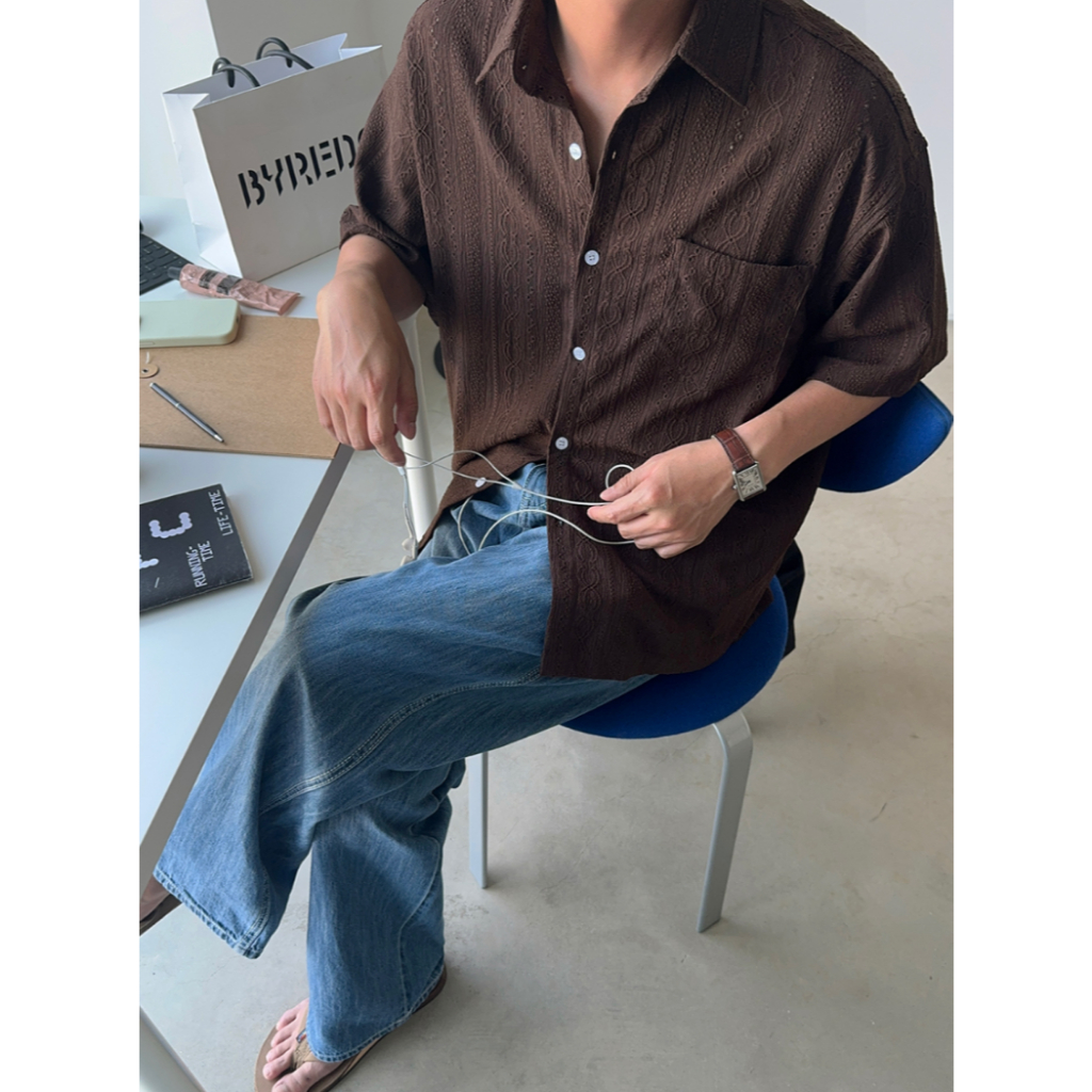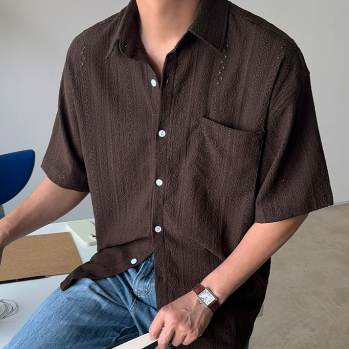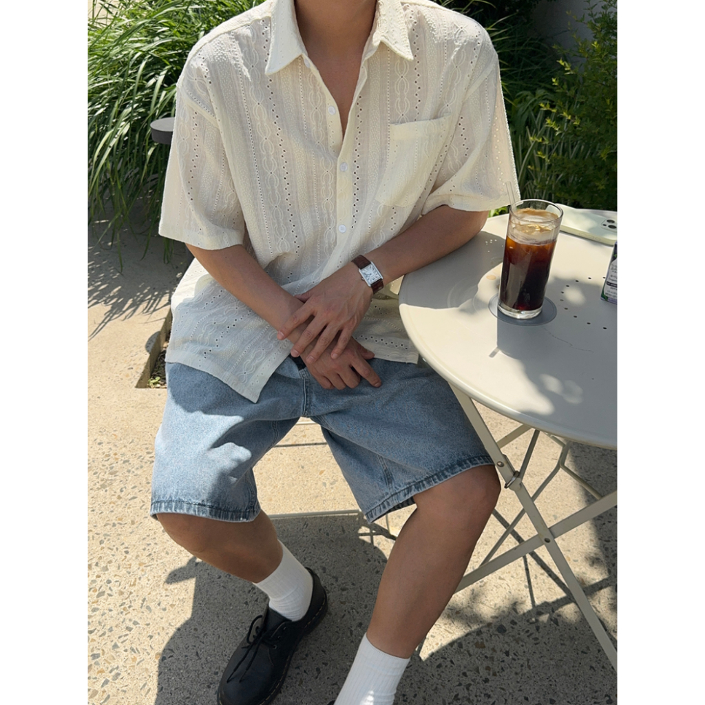 【Metanoia】韓國設計 鏤空短袖襯衫奶油色,F|棕色,FShirtsMetanoia 正韓服飾 & MdoC 總代理