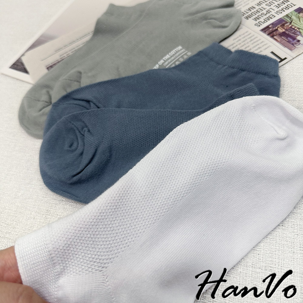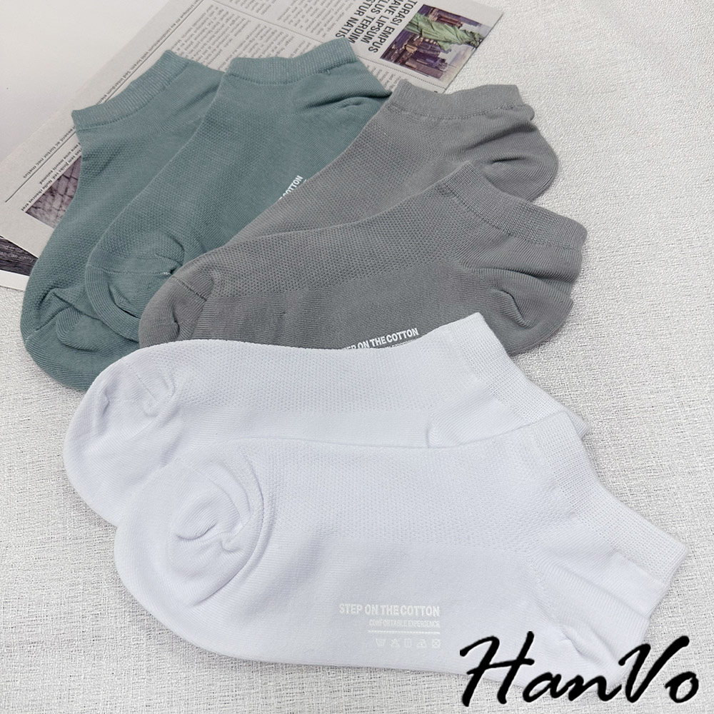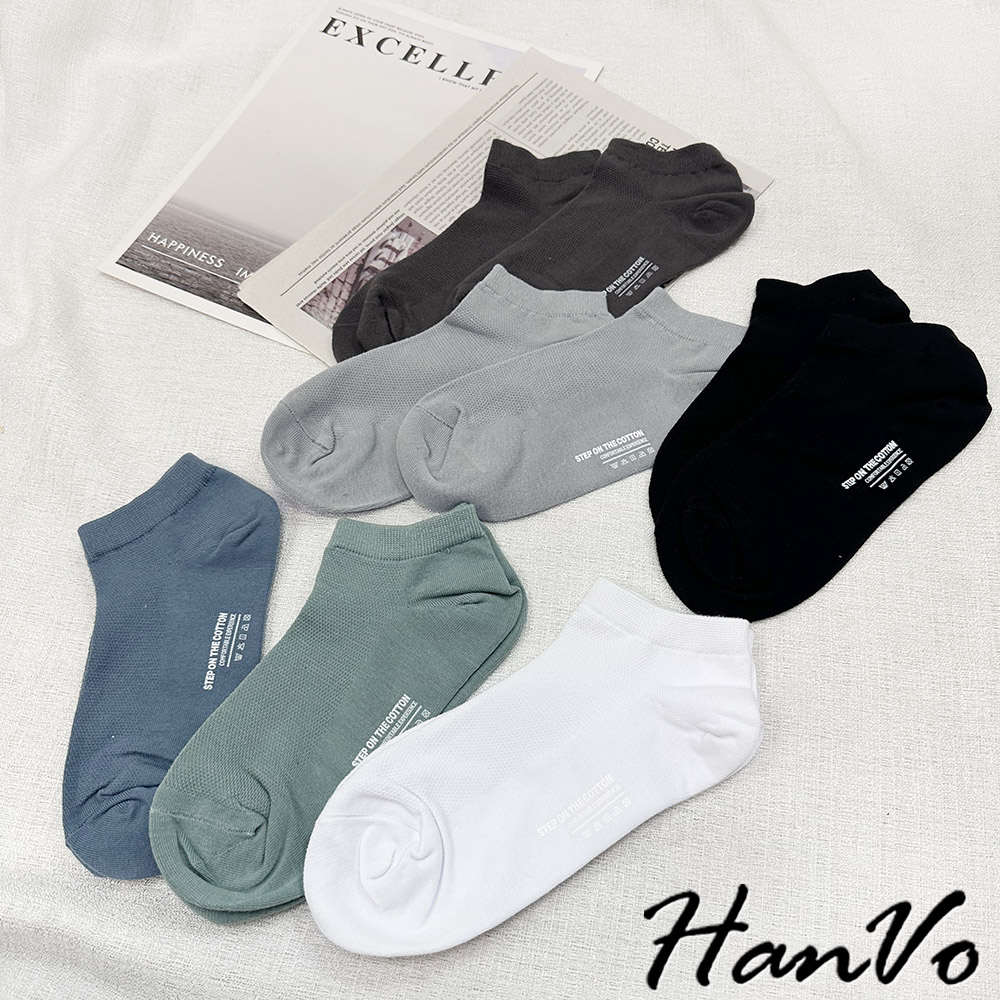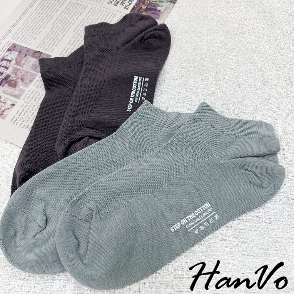 【HanVo】男款簡約純色網洞透氣短襪 舒適親膚柔軟棉質短襪 韓國襪子 白襪 襪子 短襪 男生配件 B07-7007淺灰|深灰|湖綠|黑色|海藍|白色HanVo Wear Collection