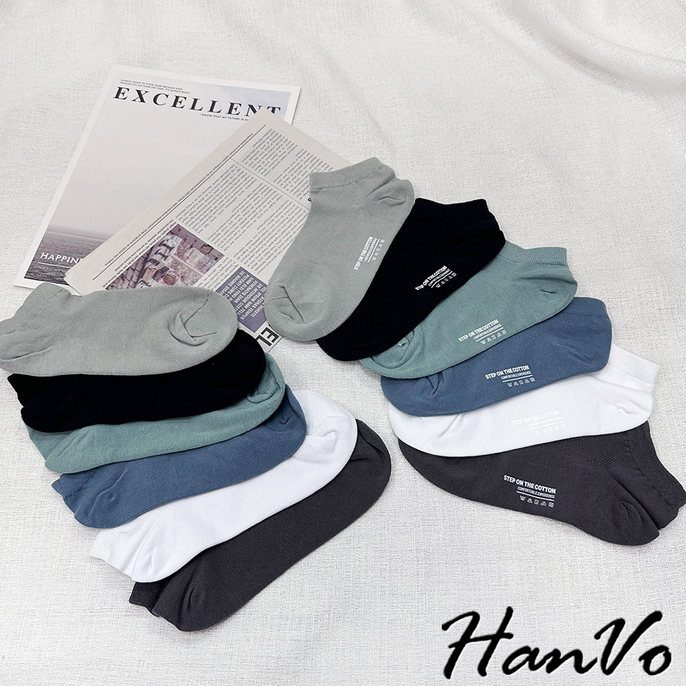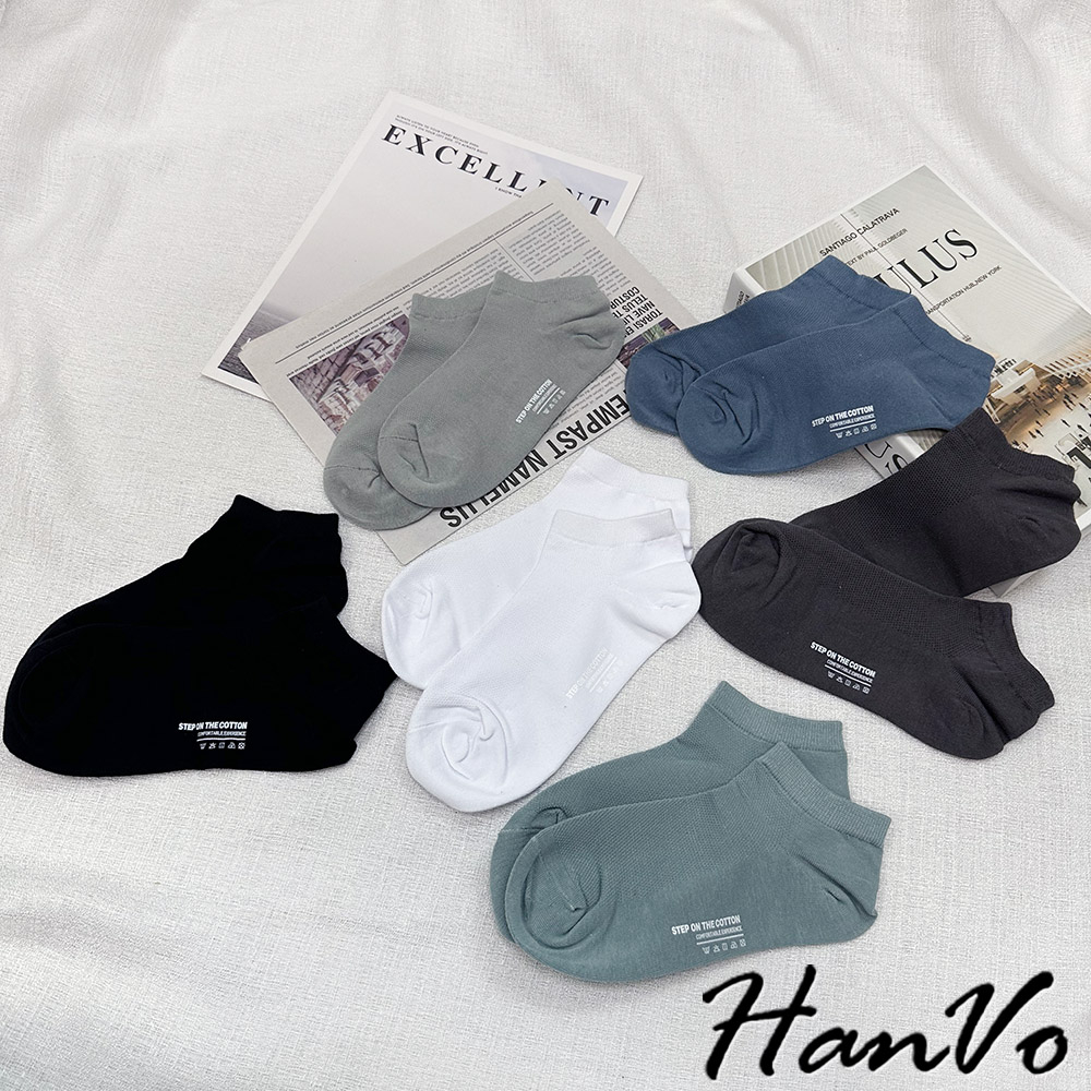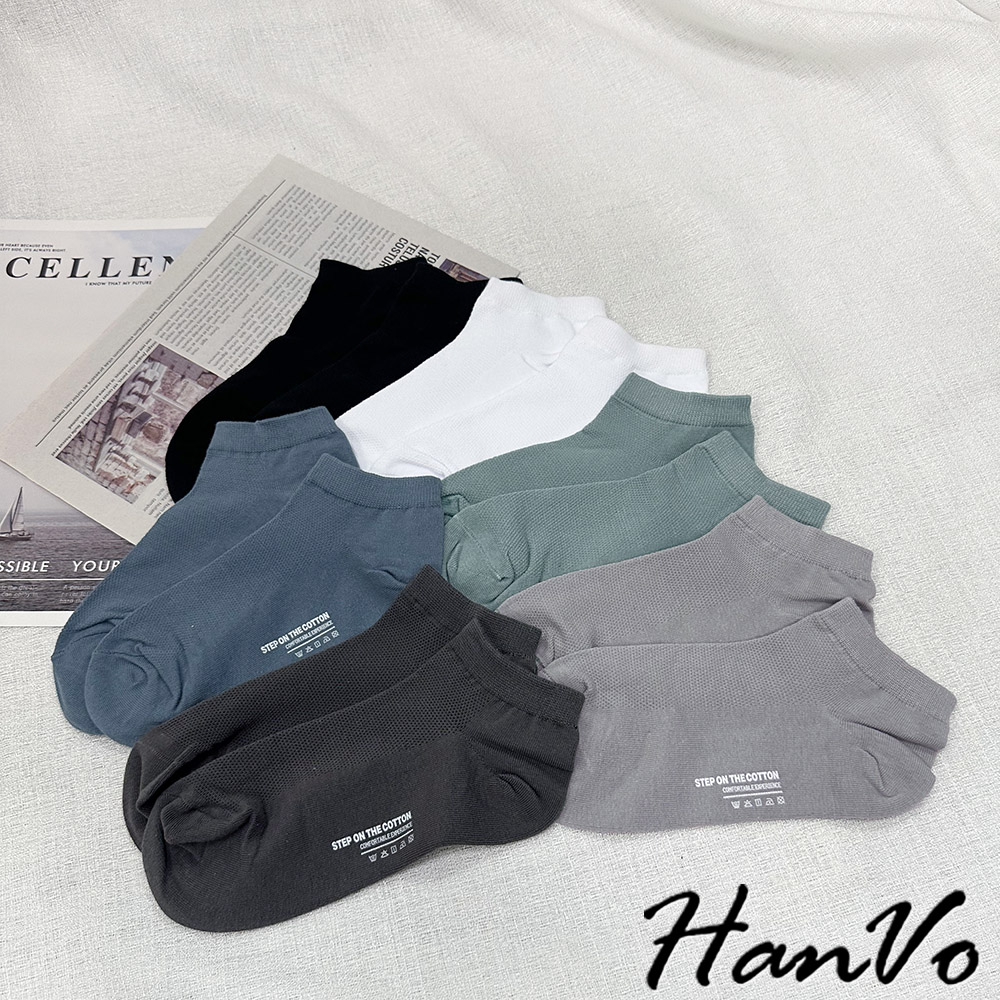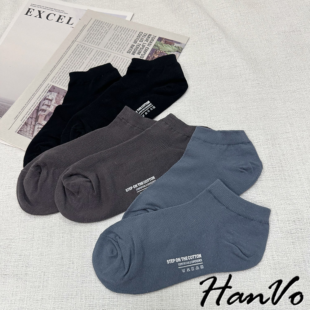 【HanVo】男款簡約純色網洞透氣短襪 舒適親膚柔軟棉質短襪 韓國襪子 白襪 襪子 短襪 男生配件 B07-7007淺灰|深灰|湖綠|黑色|海藍|白色HanVo Wear Collection