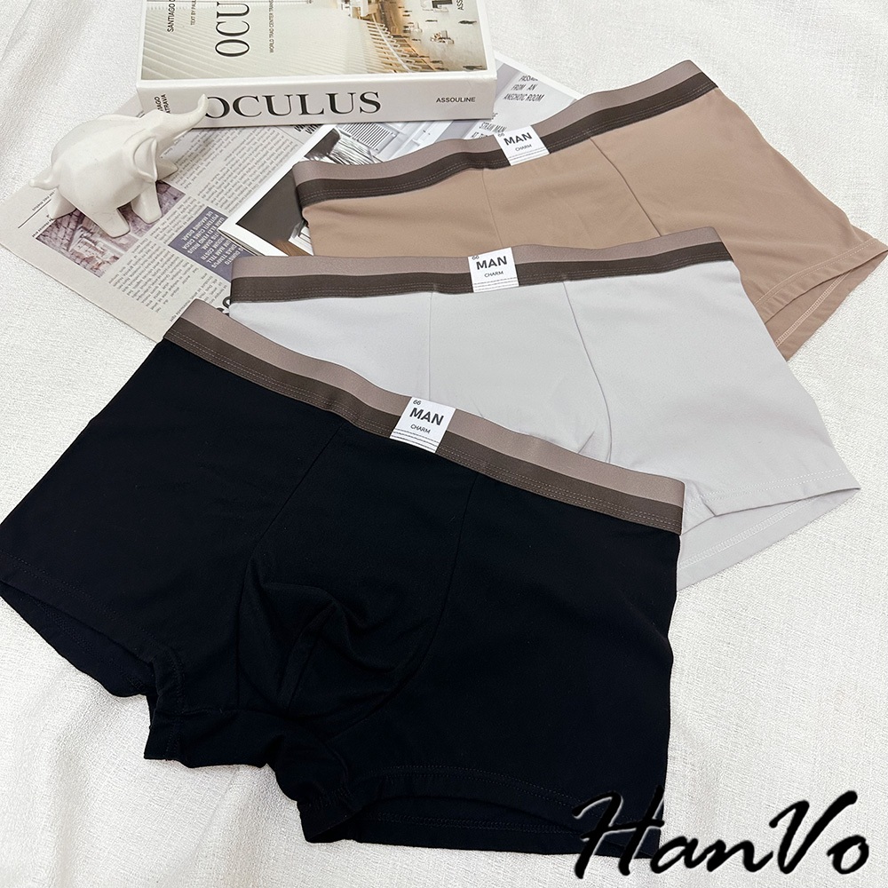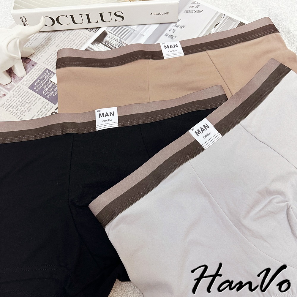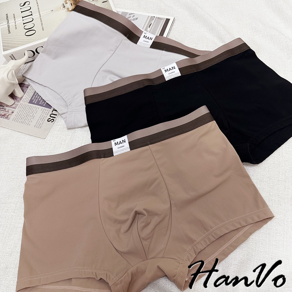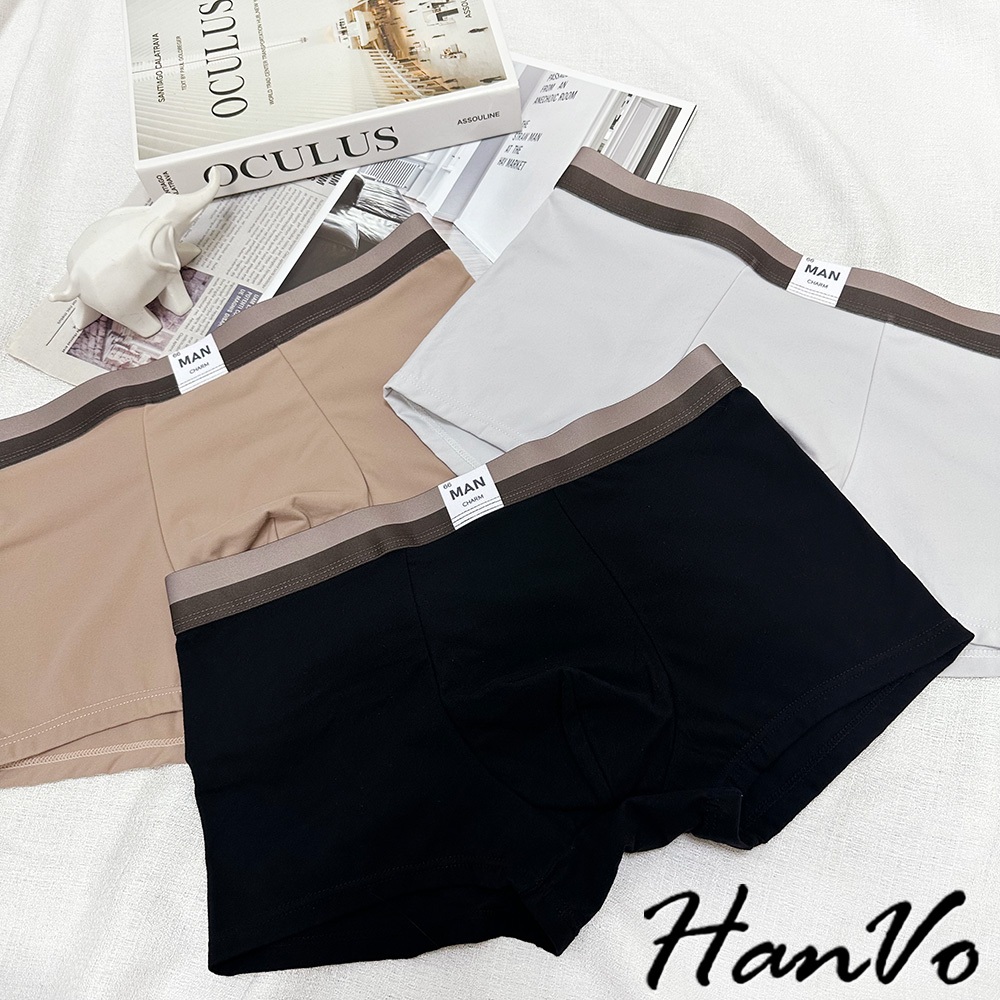【HanVo】升級款! MAN標籤親膚純棉加厚內褲 高彈性寬鬆透氣中腰內褲 流行男款內褲 內著 B05-5050午夜黑|冰川灰|可可咖UnderwearHanVo Wear Collection