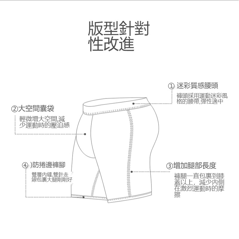 • HENIS 運動機能長版四角褲 透氣 男內褲 棉質內褲 運動內褲 防磨內褲 防燒檔 路跑 馬拉松 大尺碼內褲