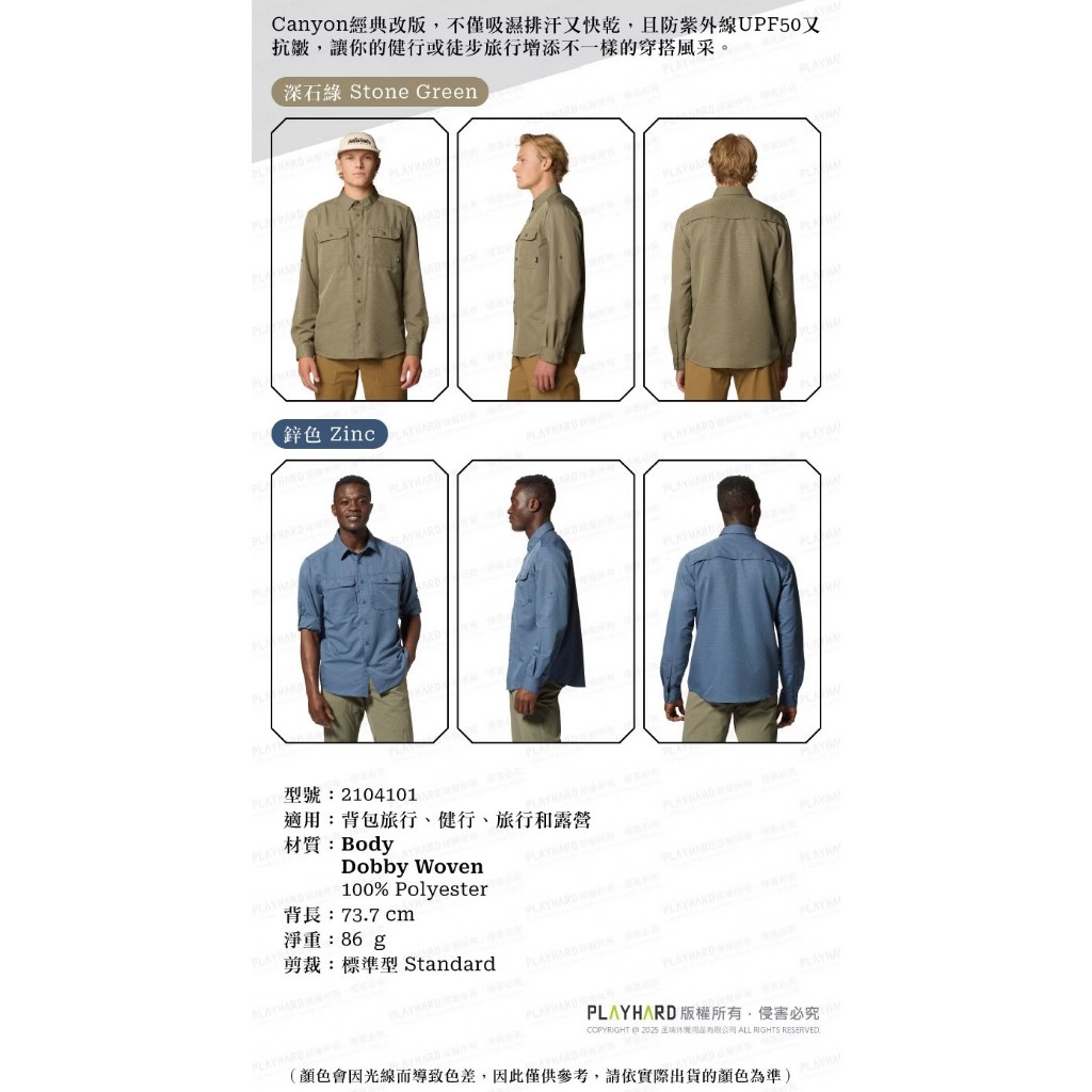 Mountain Hardwear Canyon 機能健行長袖襯衫 2104101 男款397 深玉石綠,S|397 深玉石綠,M|397 深玉石綠,L|397 深玉石綠,XL|492 鋅色,S|492 鋅色,M|492 鋅色,L|492 鋅色,XLShirtsHME戶外裝備