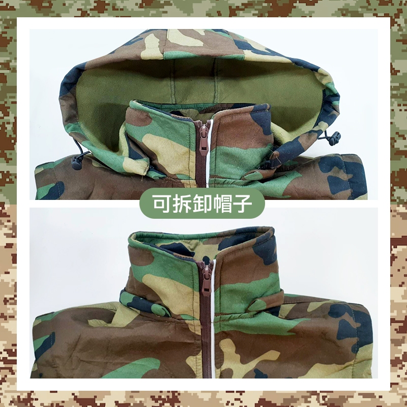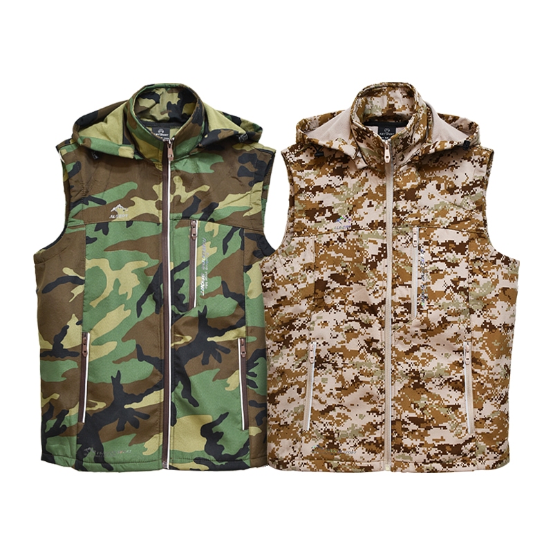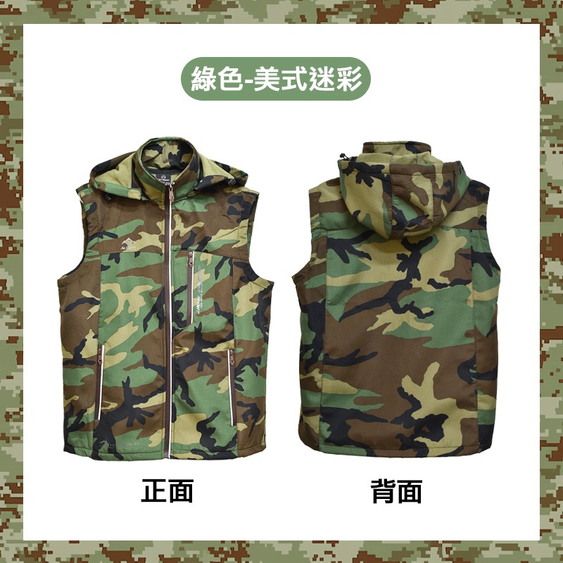 • 刷絨印花背心 可拆卸帽子 拉鍊口袋 連帽背心 迷彩背心 男生背心 男背心 背心 美式迷彩 沙漠數位迷彩