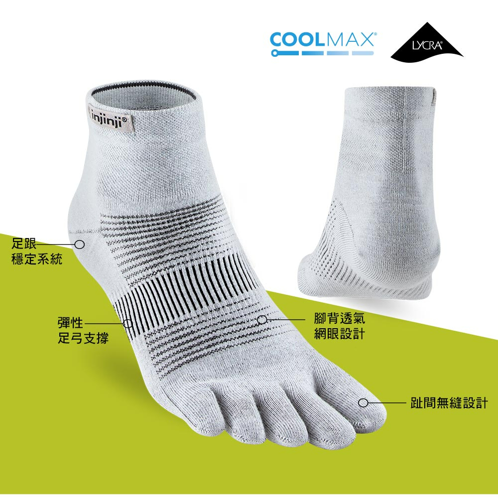 【injinji】Run輕量吸排五趾短襪NX (灰色) – NAA1293 | COOLMAX 輕量 吸濕排汗 五趾襪灰色,S|灰色,M|灰色,LGOHIKING戶外用品專賣店