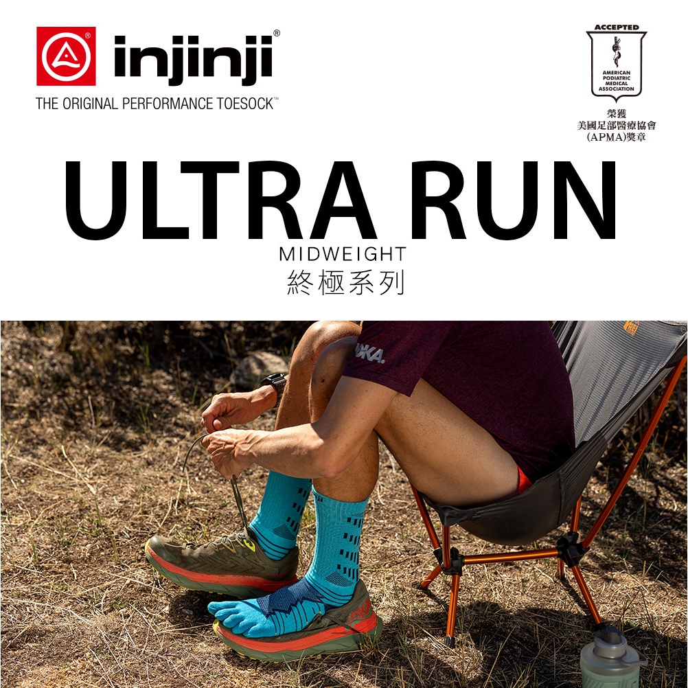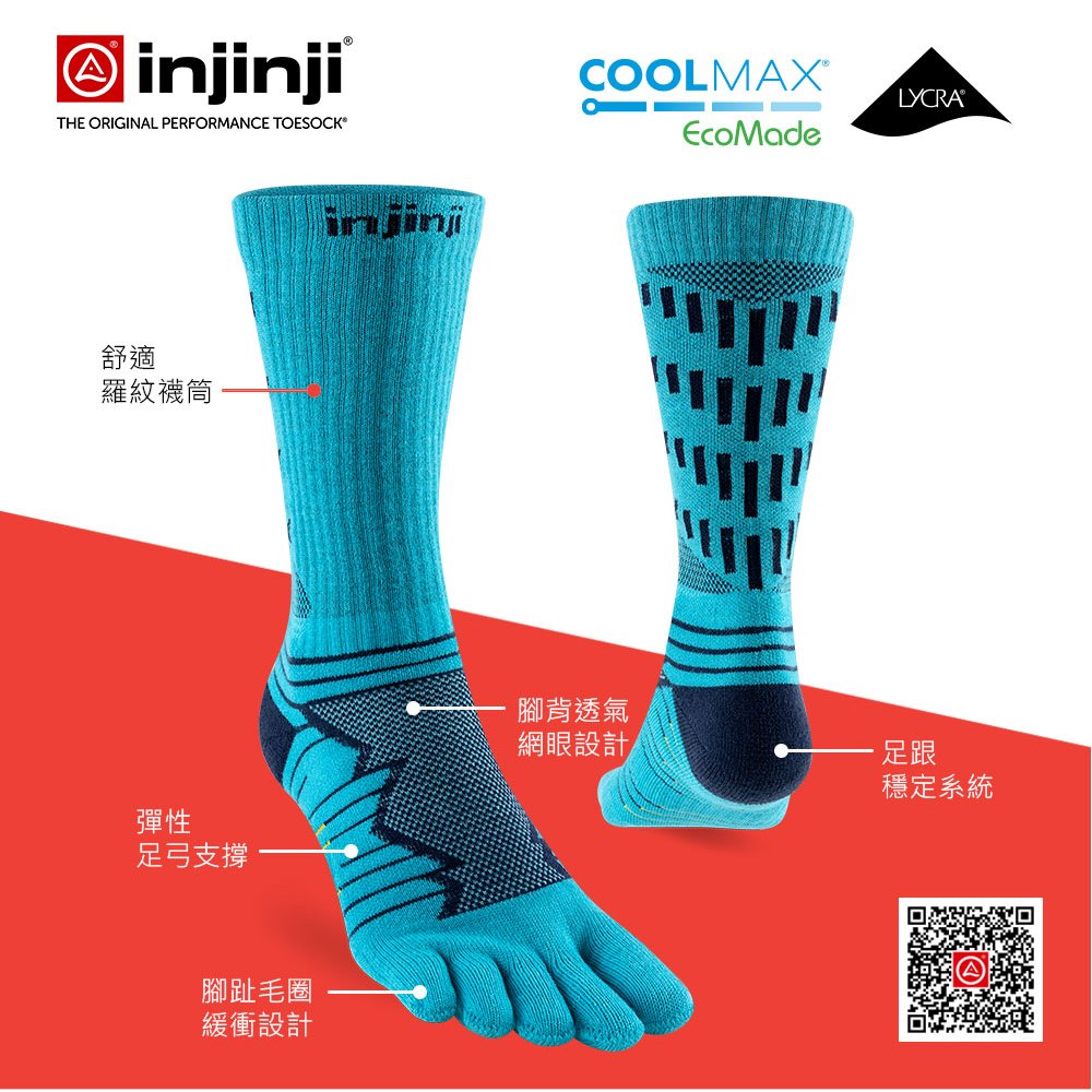 【injinji】Ultra Run終極系列五趾中筒襪(太平洋藍)-NAA6756|避震緩衝 推薦路跑用 慢跑 馬拉松襪S|M|LGOHIKING戶外用品專賣店