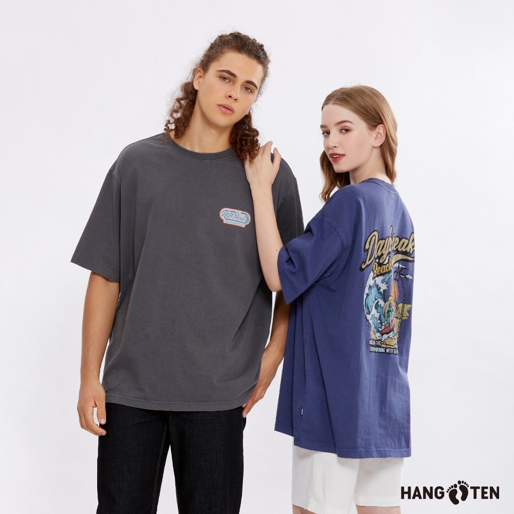 【Hang Ten】中性款-韓國同步款-寬鬆純棉海灘衝浪印花短袖T恤(多色選)炭灰,M|炭灰,L|炭灰,XL|深藍,M|深藍,L|深藍,XLT-ShirtsHANG TEN 官方旗艦館