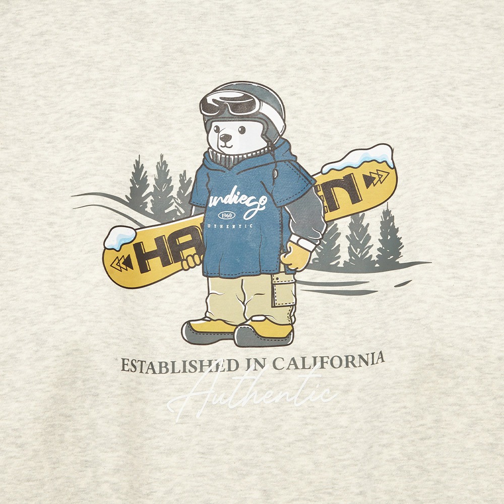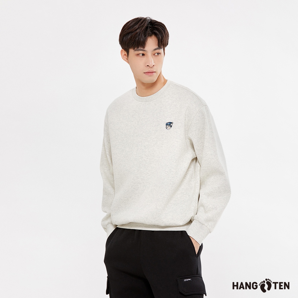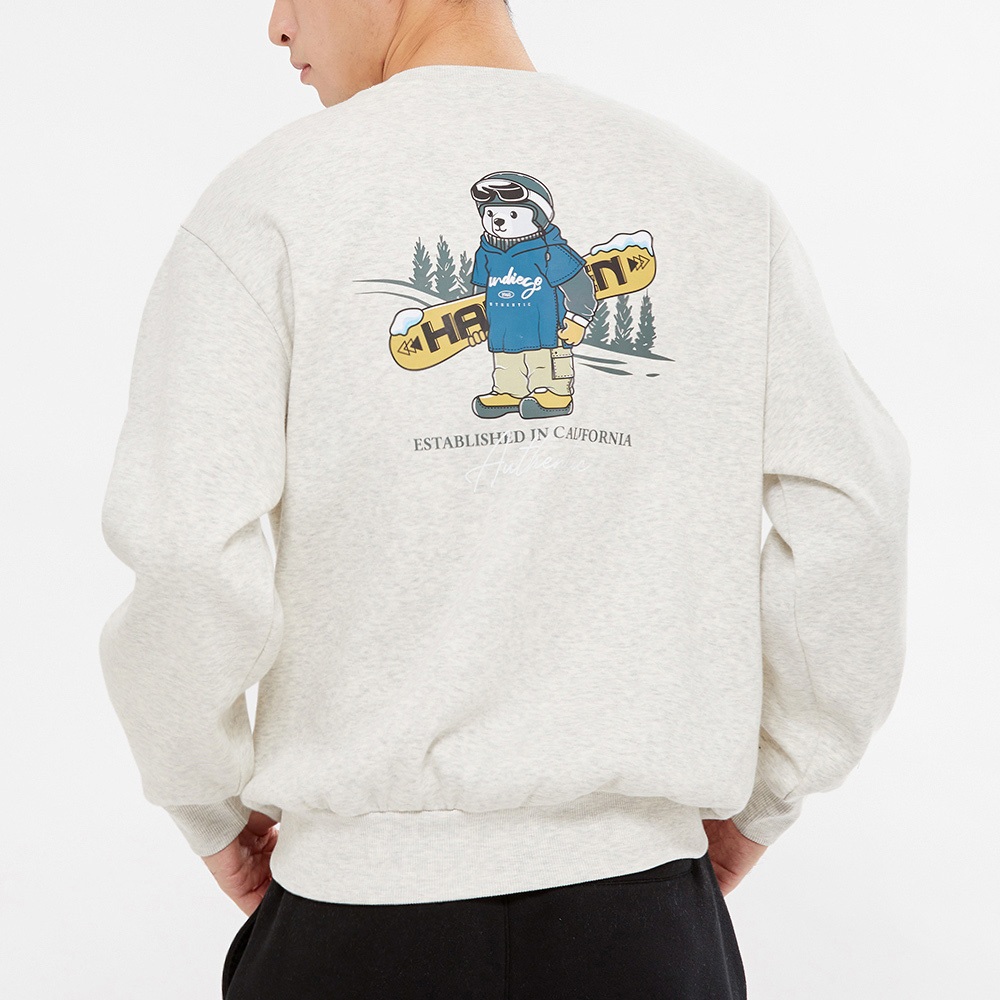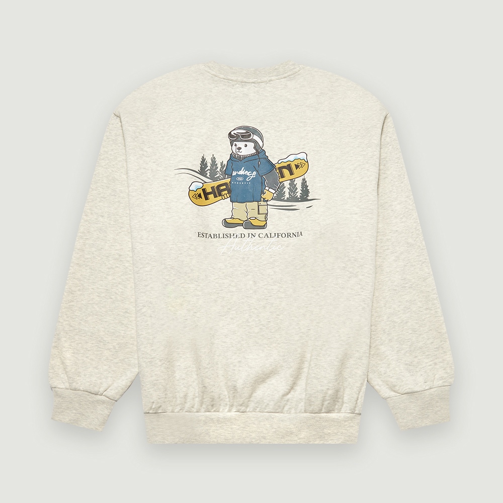【Hang Ten】男裝-正韓韓國連線-內刷毛滑雪熊印花大學T(淺卡其)S|M|L|XLSweatshirtsHANG TEN 官方旗艦館