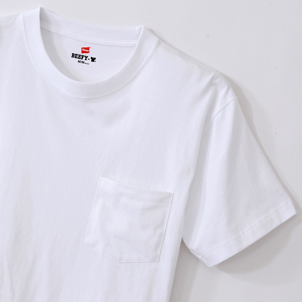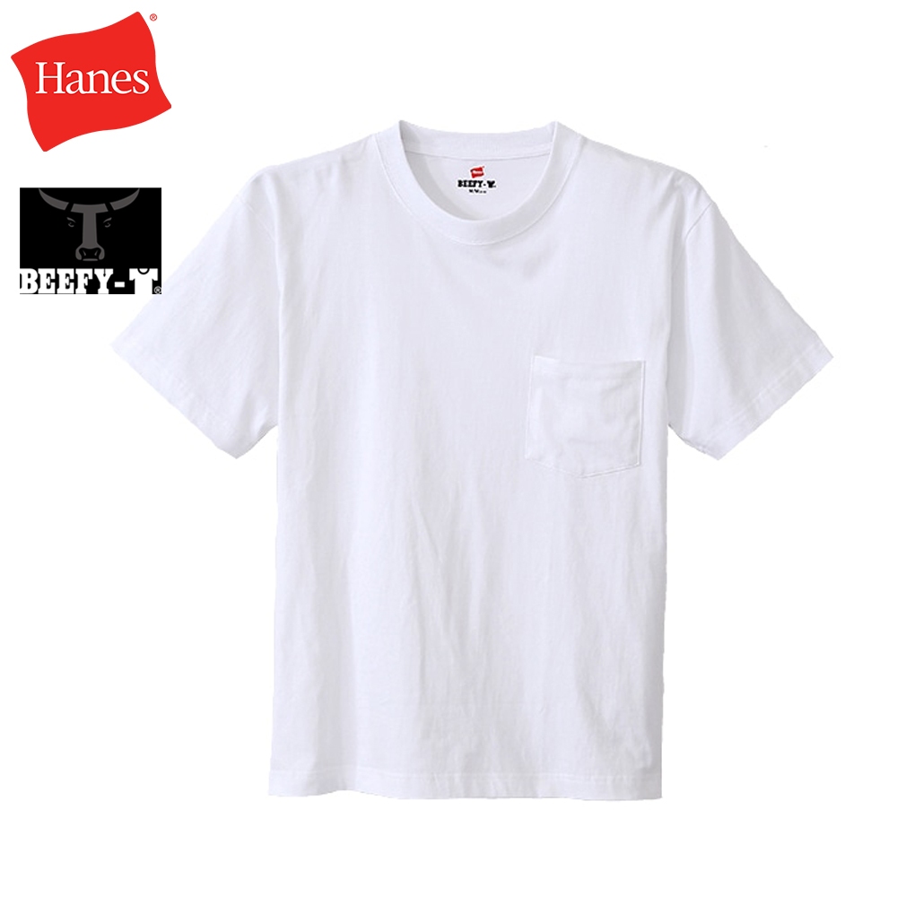 【Hanes】官方直營 男款-BEEFY-T系列 口袋短袖TEE-白色 ( H5190-010)L|XL|S|MT-ShirtsHanes 台灣官方商城